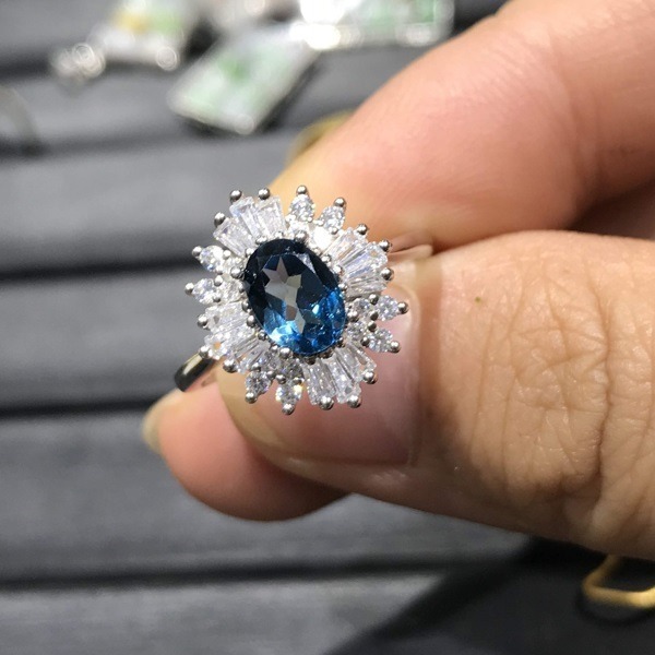女性用ブルートパーズリング、 5×7mm、925シルバー、ウェディングパーティー