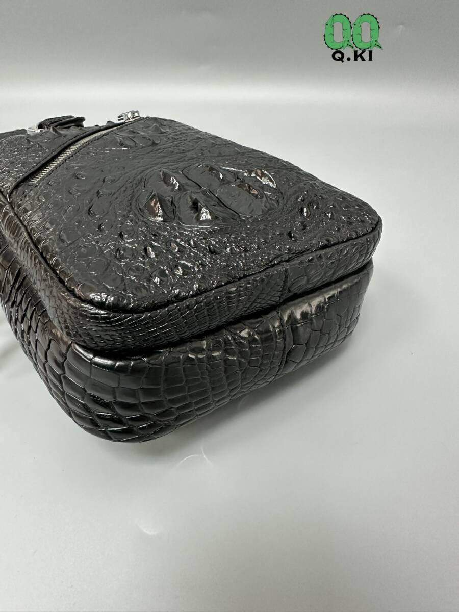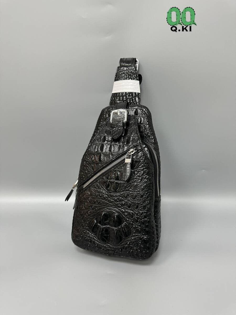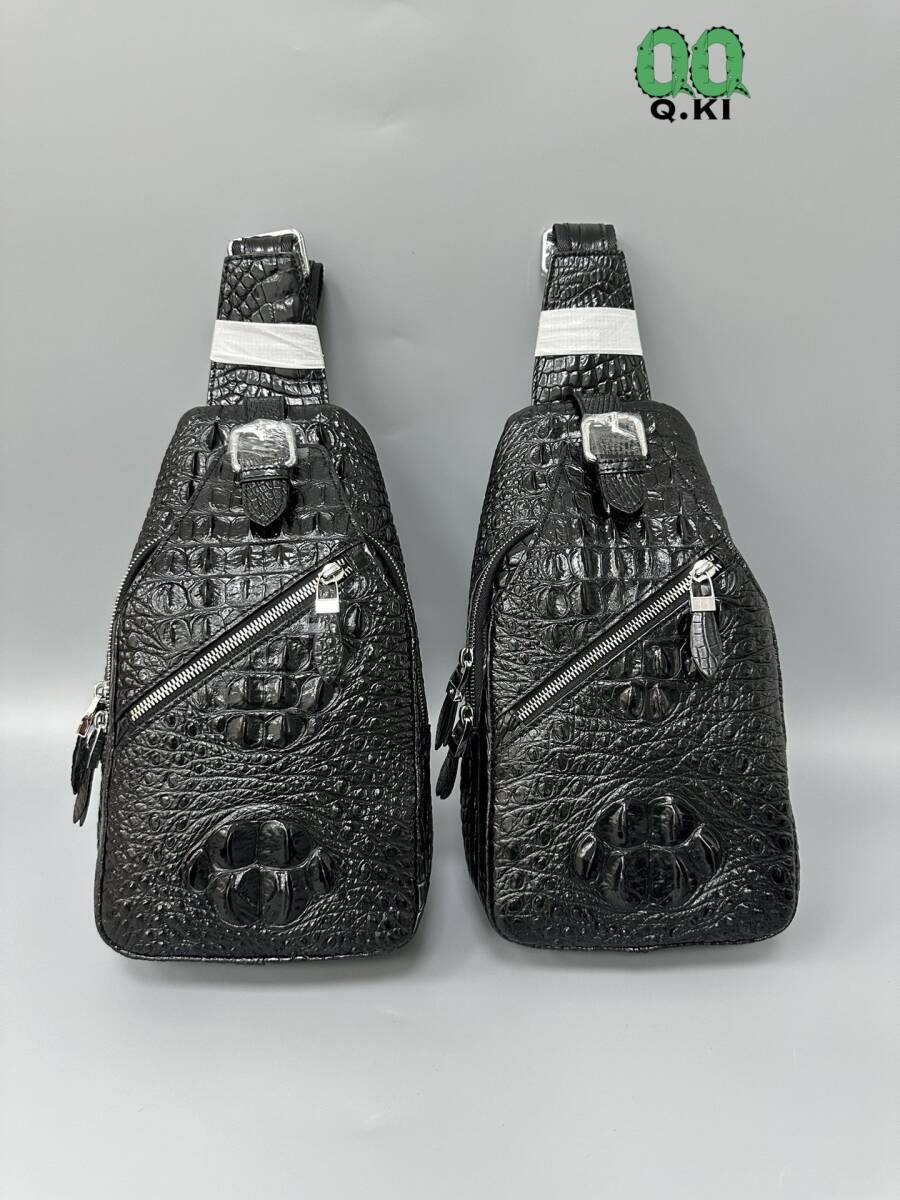 唯一無二の存在感!高品質 クロコダイル本物 ボディバッグ ワニ革 大骨 鰐レザー メンズ 総本革 斜め掛けバッグ かっこいい 黒