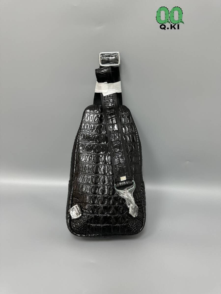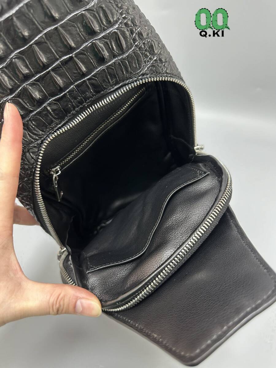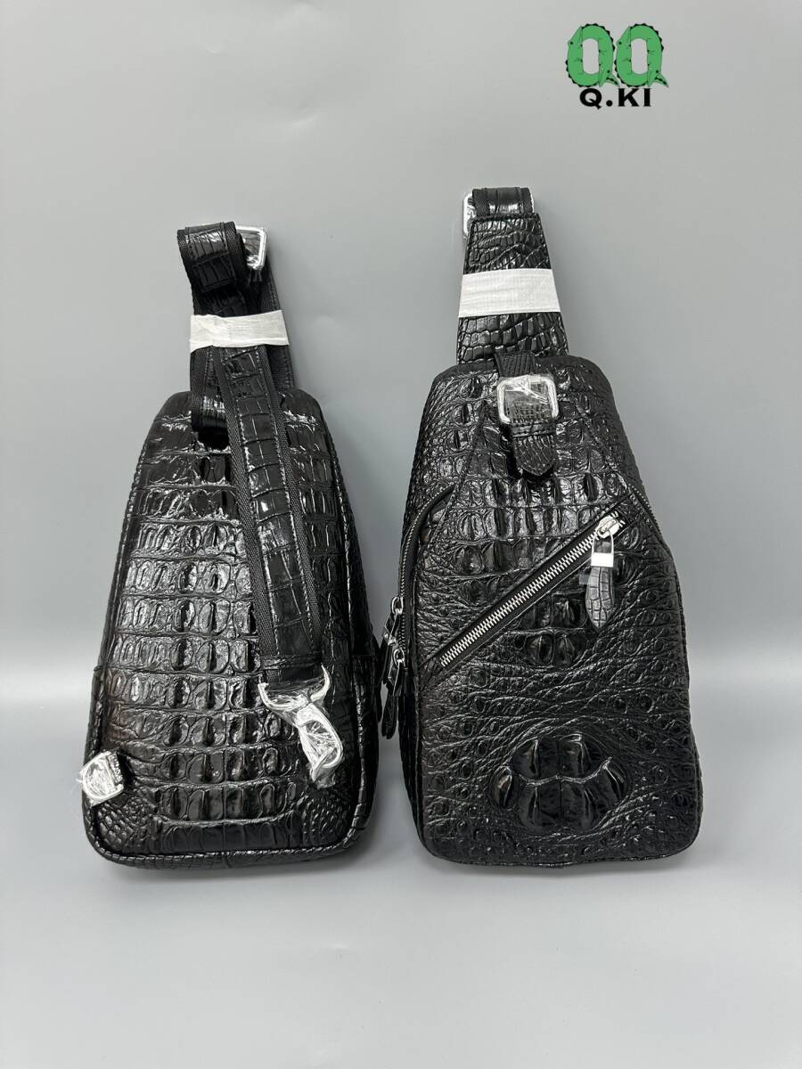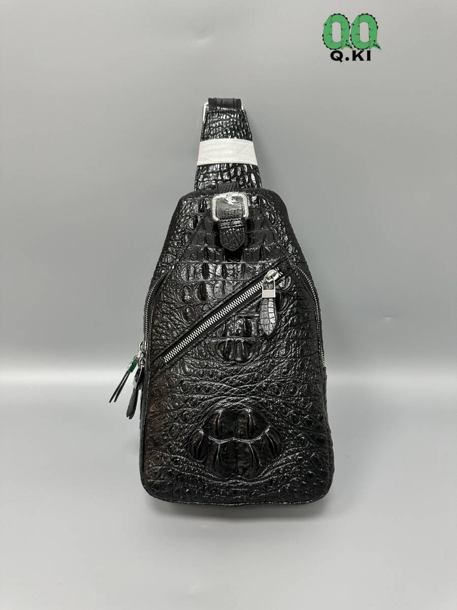 唯一無二の存在感!高品質 クロコダイル本物 ボディバッグ ワニ革 大骨 鰐レザー メンズ 総本革 斜め掛けバッグ かっこいい 黒