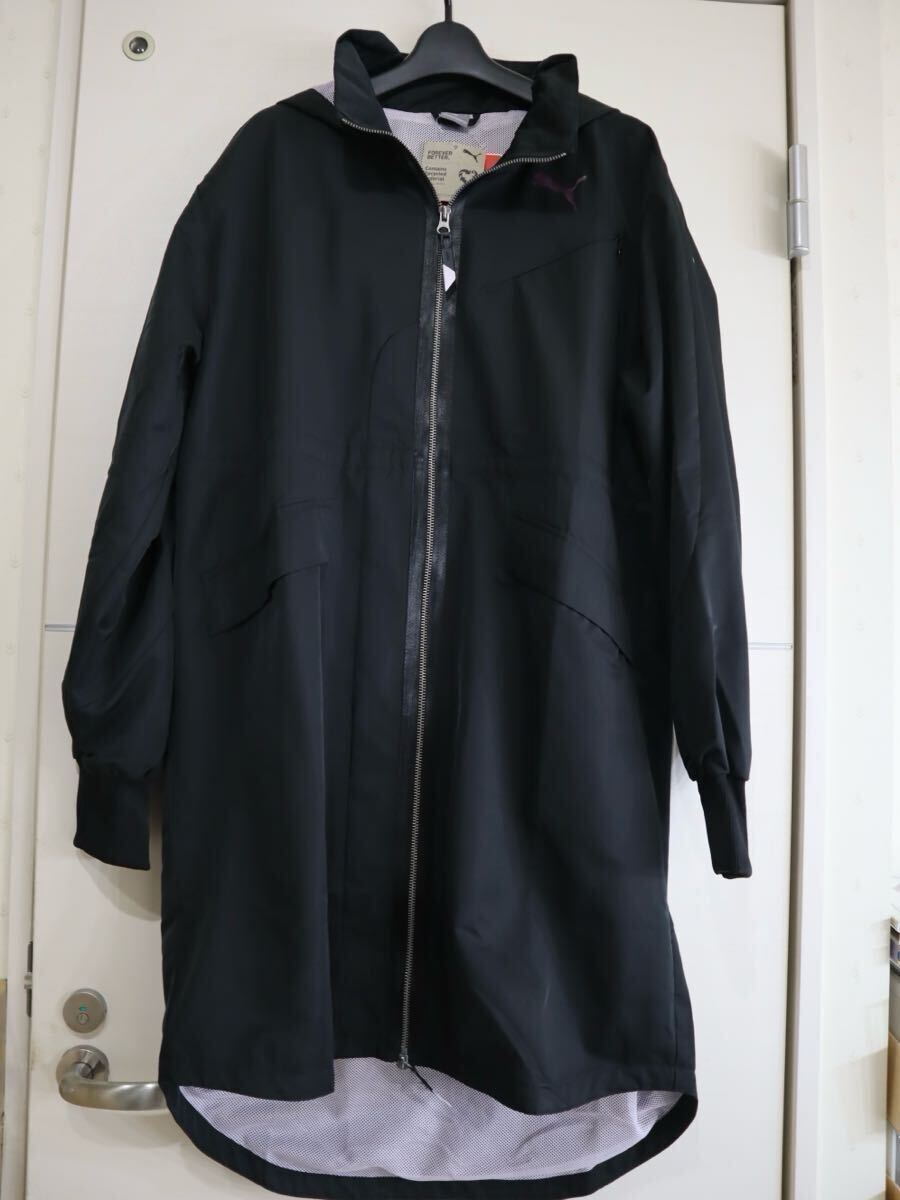 後ろが長めのひざ丈で、便利なダブルジッパーです。 プーマのブランドアイコンであるフォームストリップからインスピレーションを得たカットラインが特徴のデザインで、チェストポケットはコンシールファスナー付き。