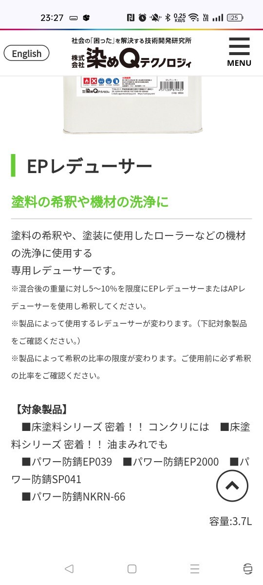 コンクリには等の塗料(混合後)重量に対し5-10%を限度に希釈することが可能です。