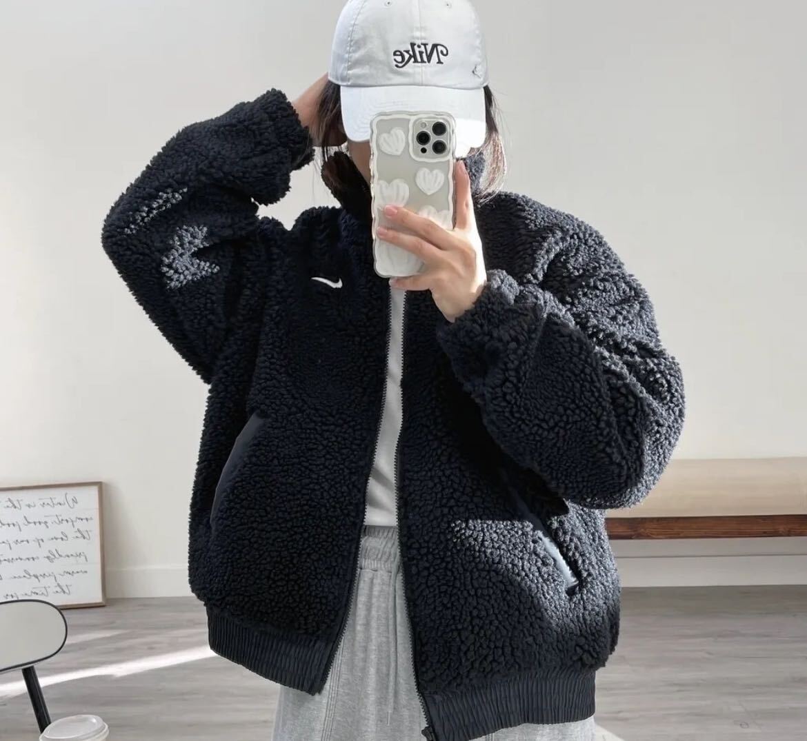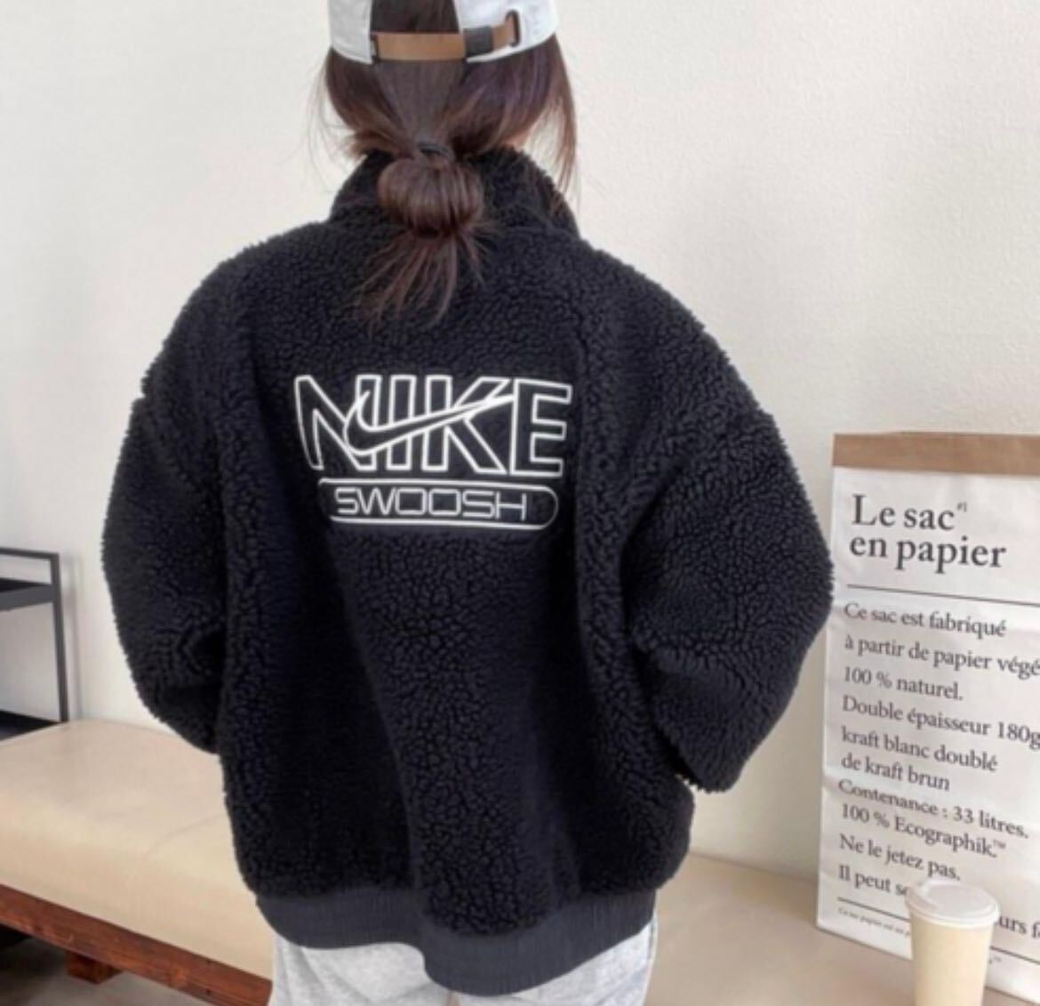 柔らかなシェルパフリースと全面にSwooshを配したデザインは、寒い日の定番アイテム。膝まで届く長めの丈で、カバー範囲と保温性を強化。フリースに施したエンボス加工のSwooshロゴが洗練された印象を演出。休日のパーティや普段着に大活躍する一枚。