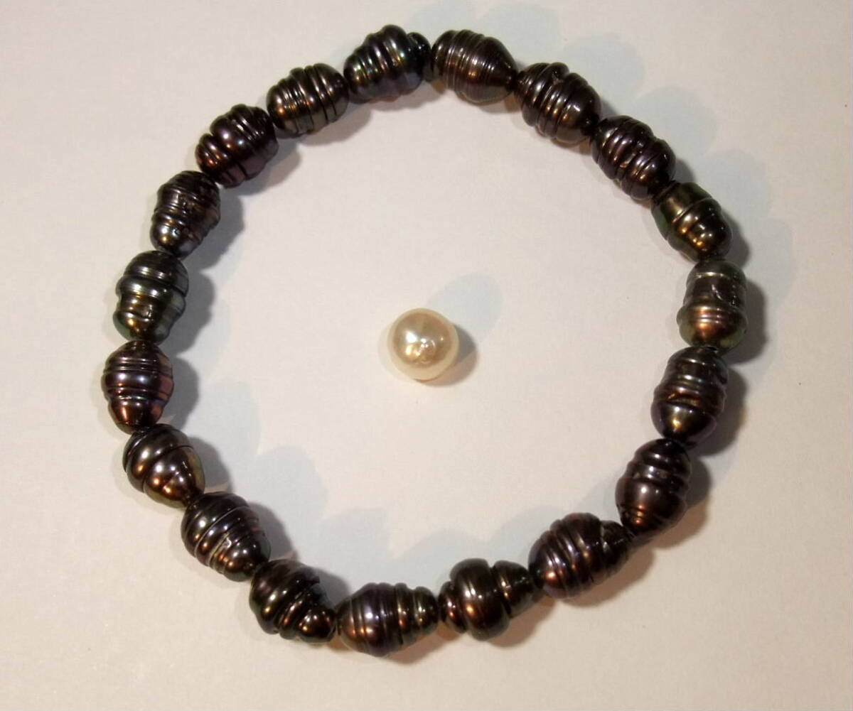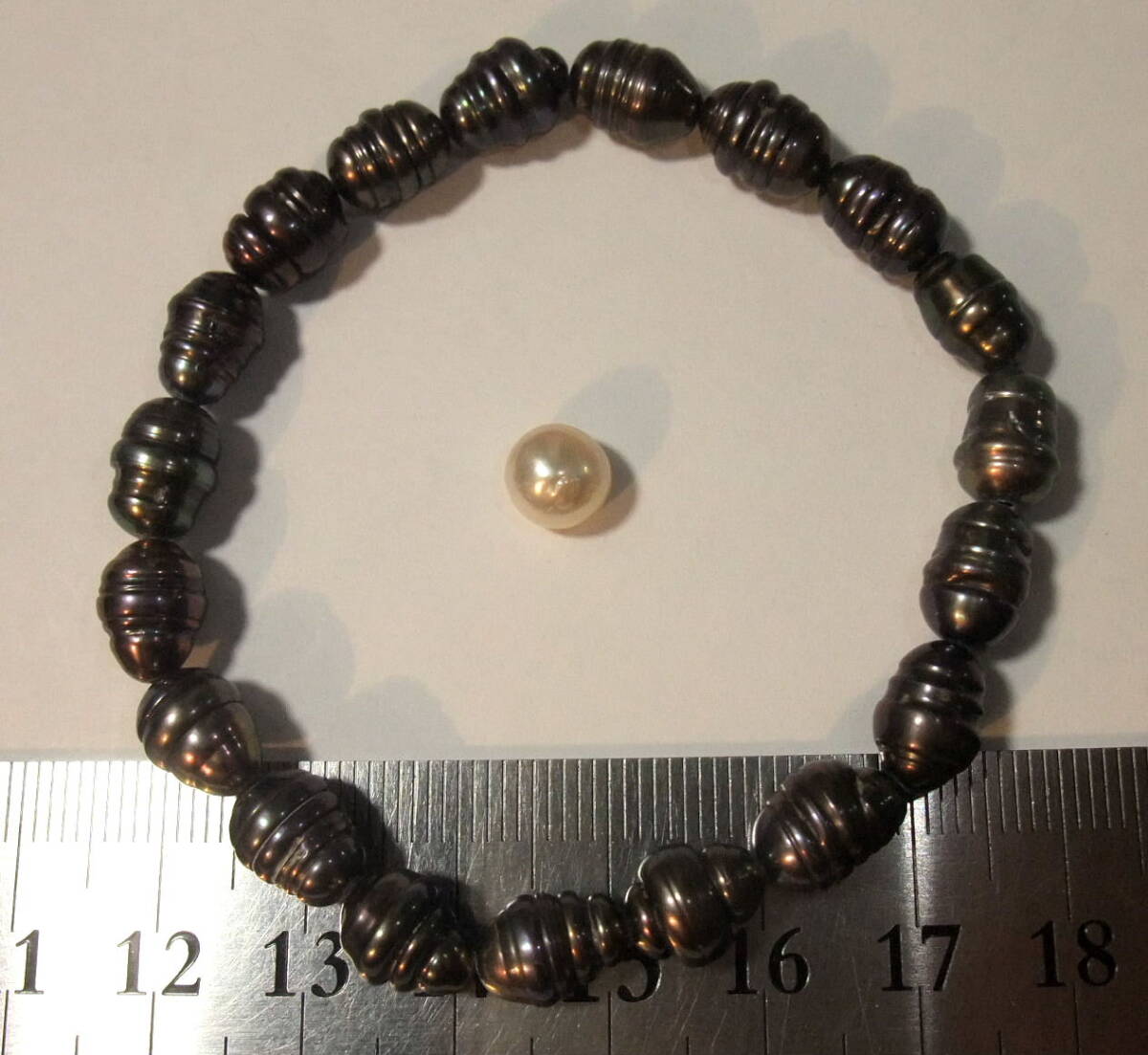 価格が高騰中の淡水パールの綺麗なブレスレットゴム仕様のお品と、アコヤ真珠並玉のスリークォーター(金具にセットしやすいように底面をフラットカットしたもの)のお得なセットになります☆未使用新品ですがやや古い在庫品なので、ゴム替えを前提でご検討ください☆当面はそのまま使えると思いますが、経年によりややゴムが弱っているかと思います☆色合いもサイズもシェイプもそこそこ揃っているので、お素材として使われるのがお薦めのお品です☆☆