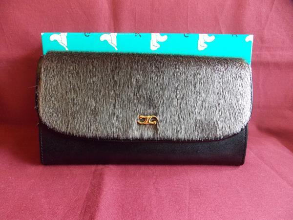送料無料 女性用 長財布(小銭入れあり)希少 アザラシ皮革+本革レザー 未使用 保管品です。