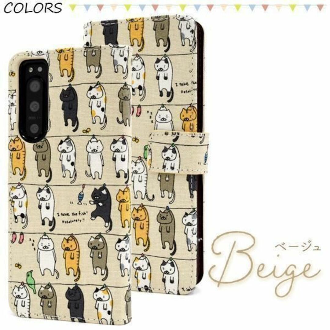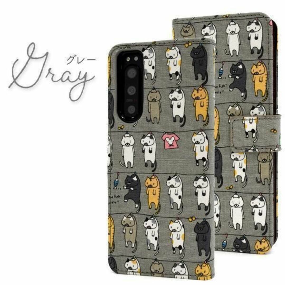 いっぱいの猫達が干されている柄の手帳型ケースです。