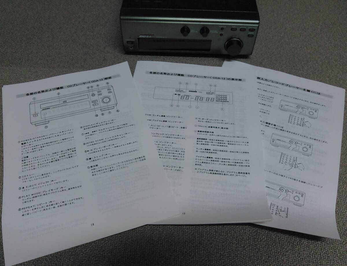 商品は『BOSE RA-12チューナーアンプ本体 中古』と『取扱説明書(コピー全48頁)』です。