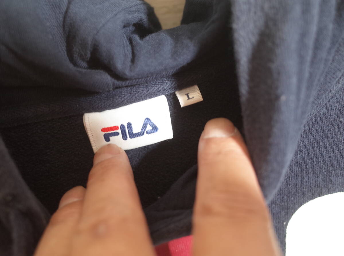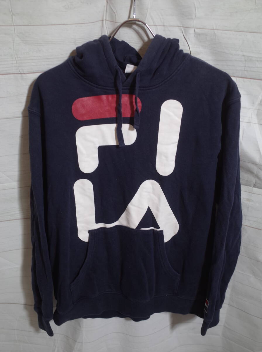 メンズ pl825 FILA フィラ ビッグロゴ プルオーバー スウェット パーカー L ネイビー 紺