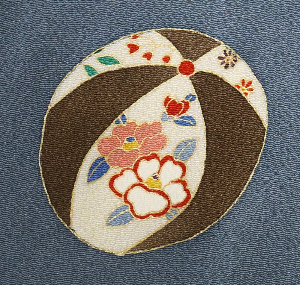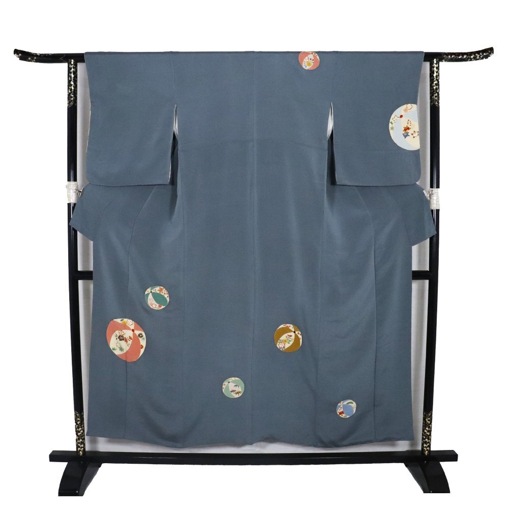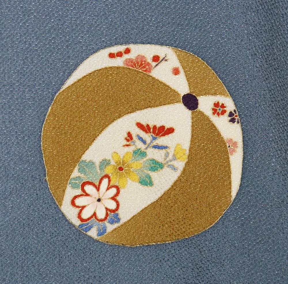縮緬訪問着 袷 丹後縮緬地 緑(御召茶色)地 手毬文 桜・松竹梅・紅葉・菊・椿・橘 (写真では上手く色が出ない場合があります。ご了承下さい) |