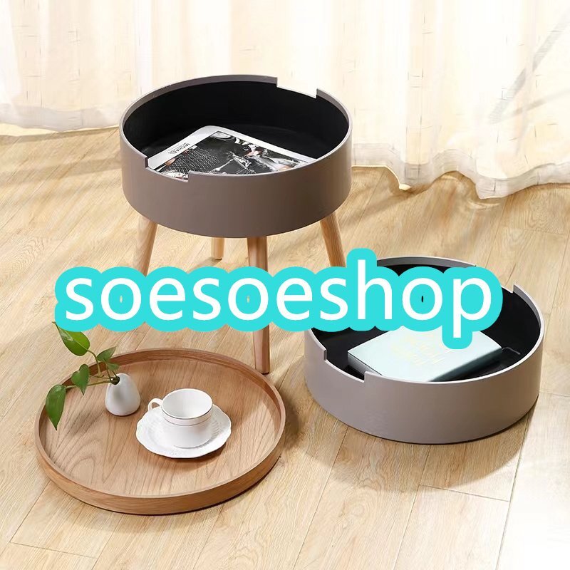 北欧家具★極美品 ★円型サイドテーブル 寝室 リビング飾り台 茶具置き 2段収納 直径38*高さ51㎝