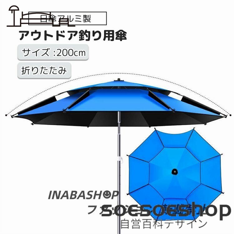 スペースを節約 アウトドア釣り用傘折りたたみフィッシングパラソルポータブルビーチパラソルキャンプ 屋外傘 プールキッチンカーパーク