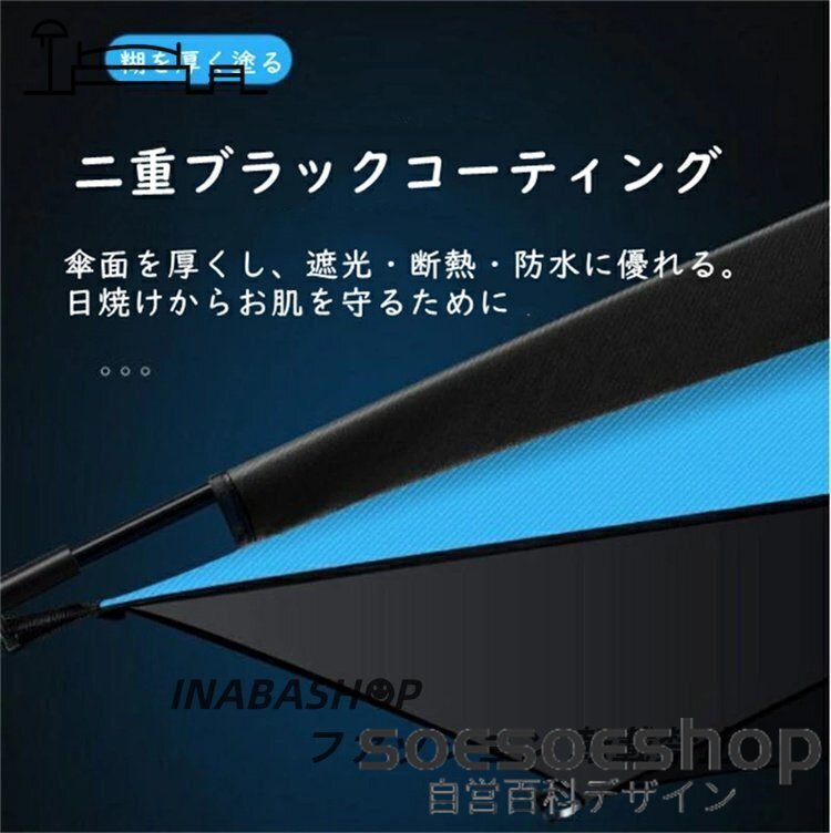 複数の角度を調節し、太陽の位置に合わせて傘の位置を調節することで、360度の太陽の照射を防ぐことができる。