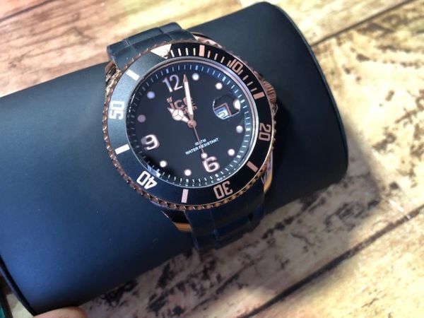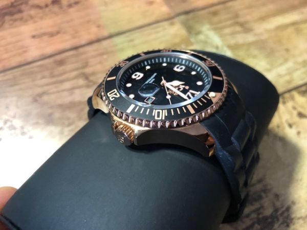 美品程度 ice watch アイスウォッチ ダイバーズデザイン デイト ブラック×ゴールド IS.BKR.B.S.13 純正ラバーベルト クオーツ 腕時計