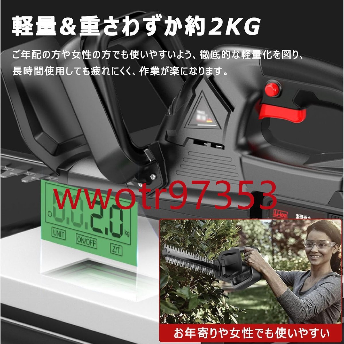 リチウム電池は、コードレスヘッジトリマーの長期連続動作をサポートする高効率電力を提供します。これは、ほとんどのトリミング作業に適しています。急速充電器は1時間で完全に充電できます。