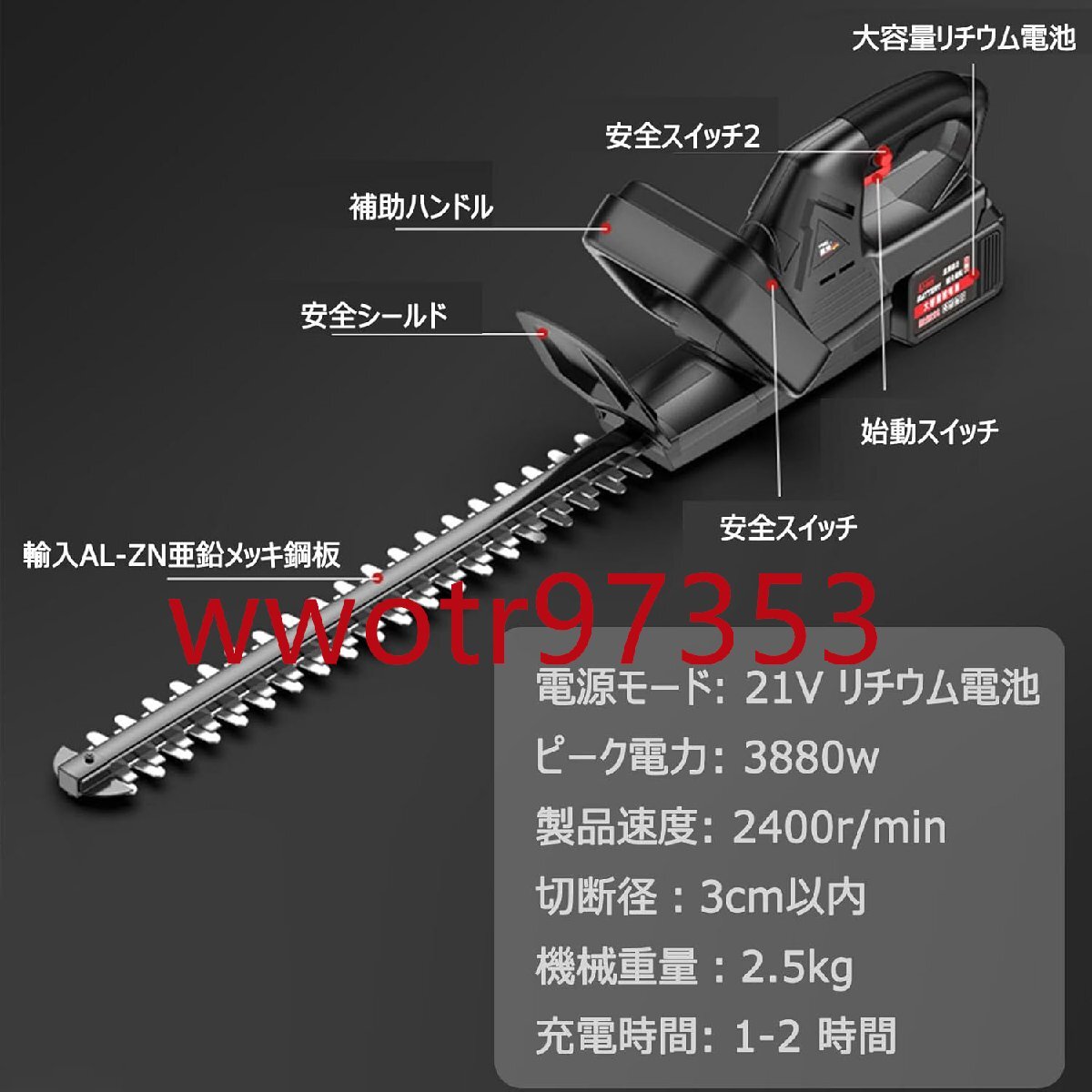 ヘッジトリマー 充電式 生垣バリカン 刈込幅600㎜ 切断径30mm 高級両刃駆動 コードレス 電動マジックトリマー バランス良い 21Vリチウムバ
