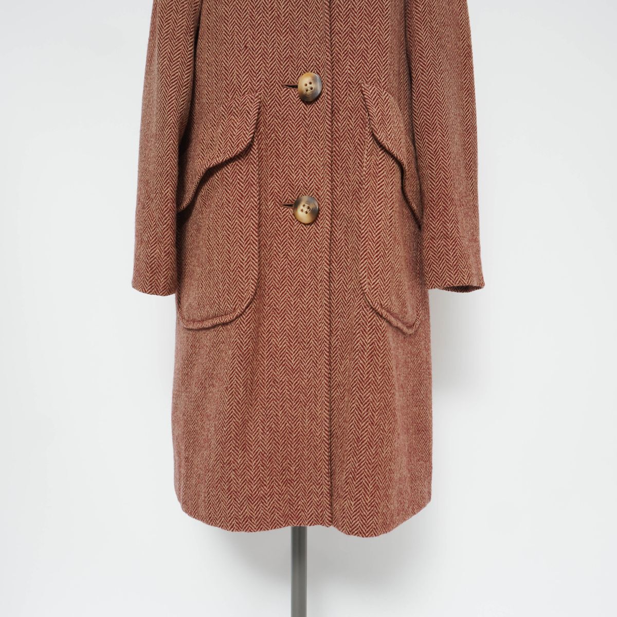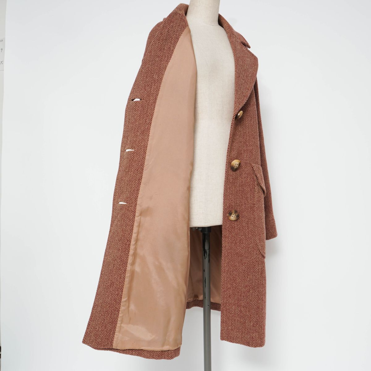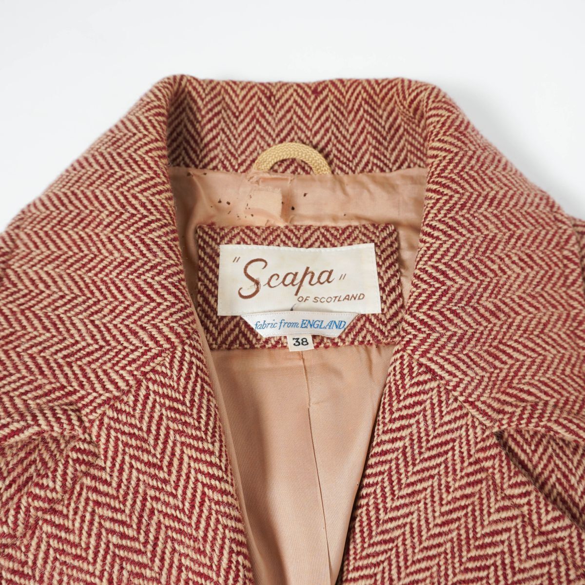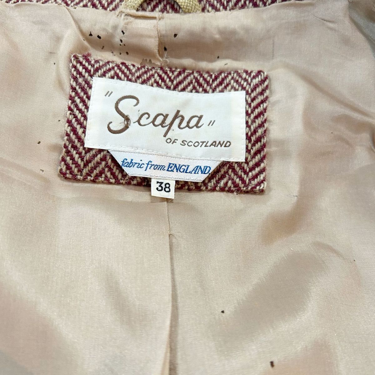 Scapa of SCOTLAND スキャパ ウール100% ロングコート ヘリンボーン柄 レディース ワインレッド ベージュ サイズ38*YC803