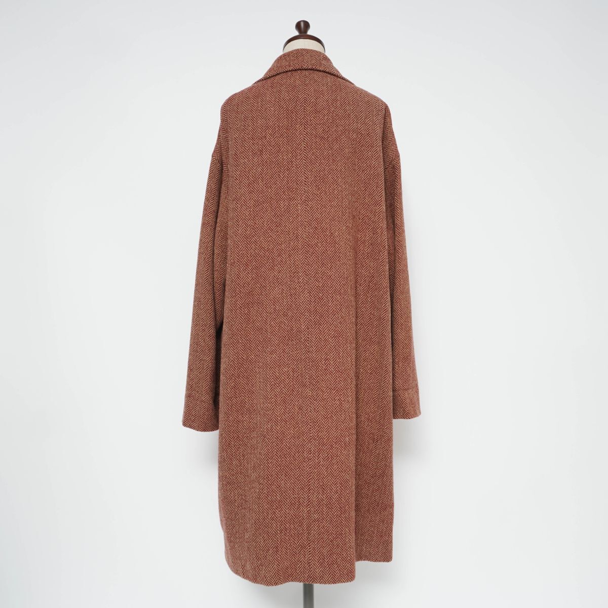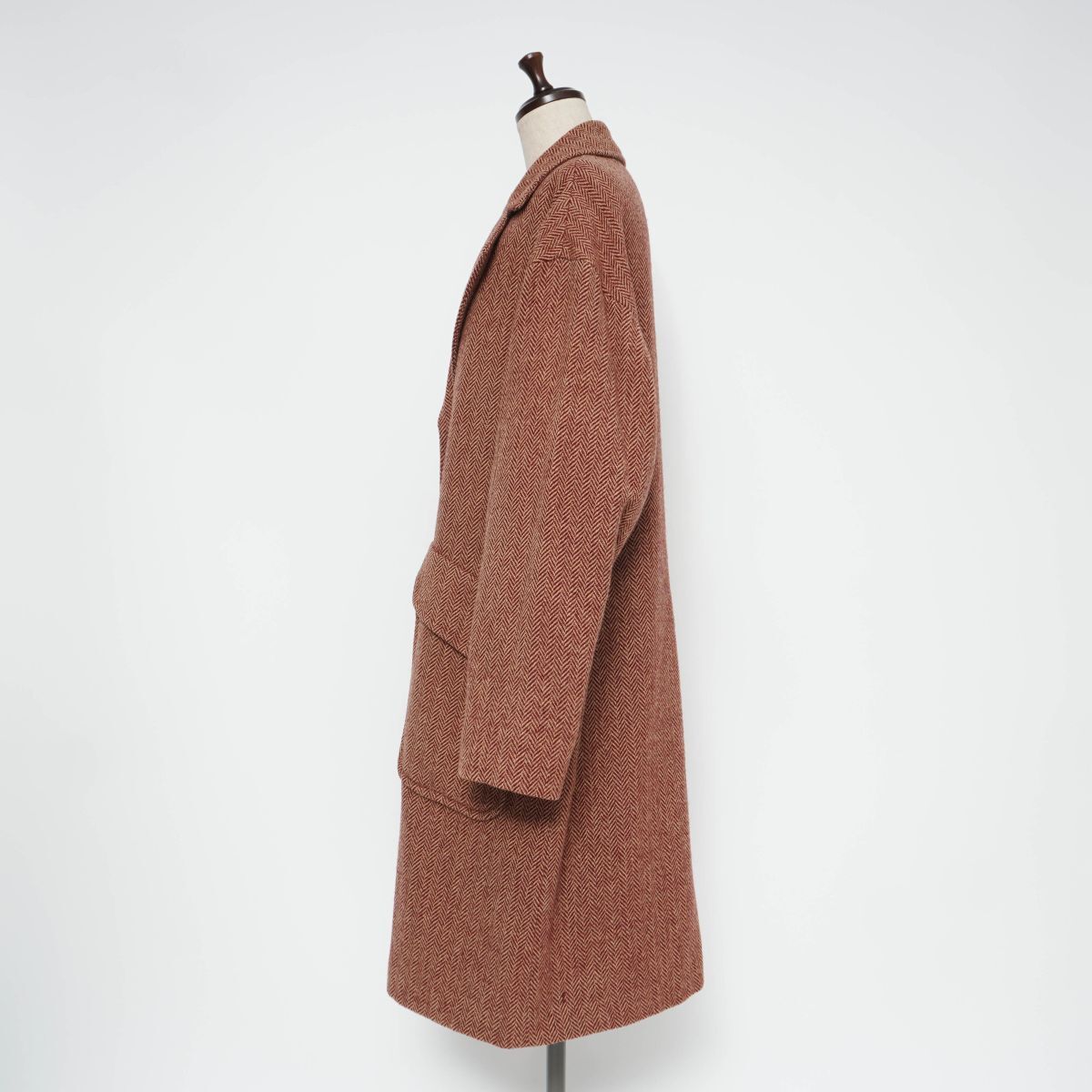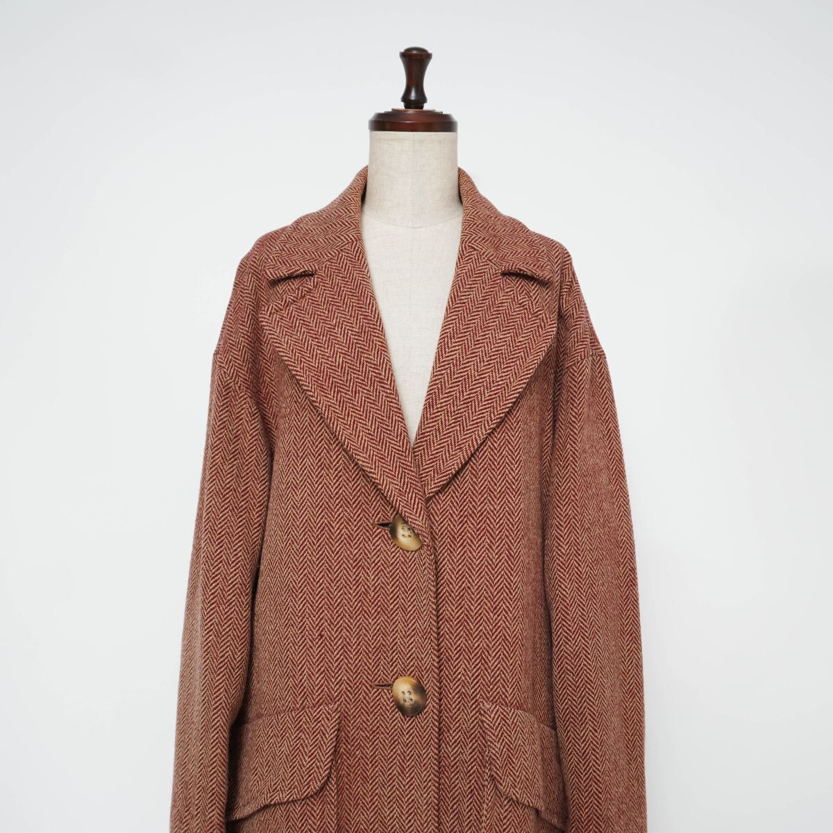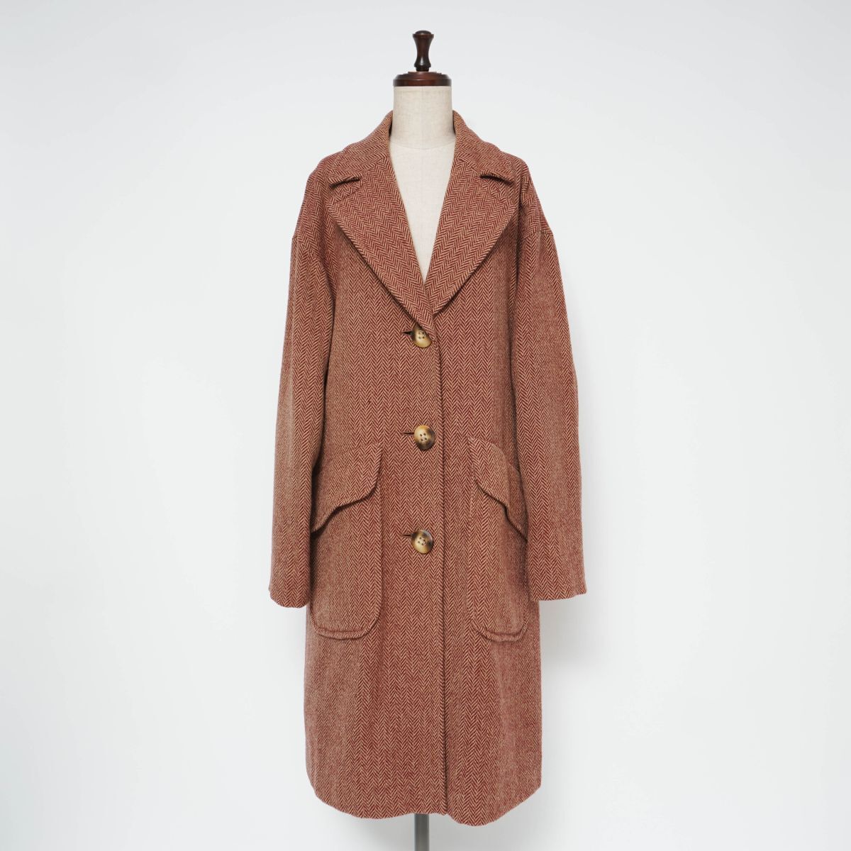 Scapa of SCOTLAND スキャパ ウール100% ロングコート ヘリンボーン柄 レディース ワインレッド ベージュ サイズ38*YC803