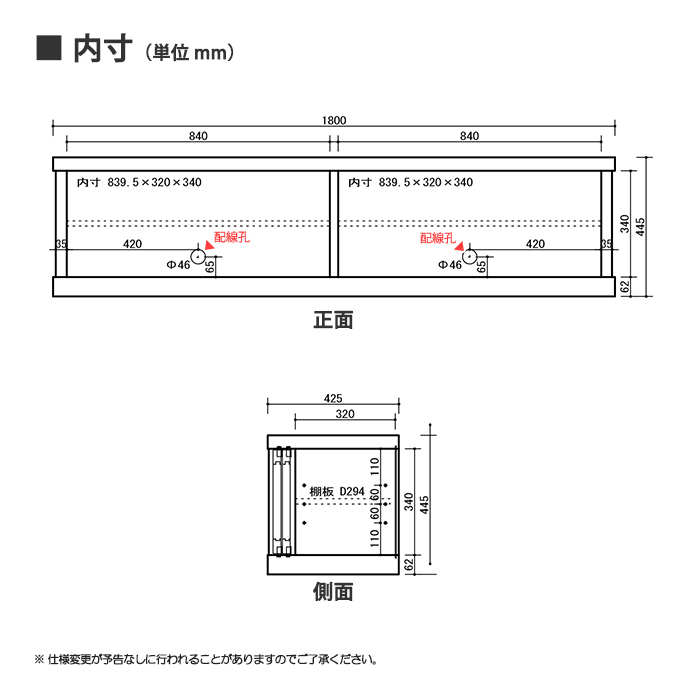 商品サイズ本体:幅180×奥行42.5×高さ44.5 cm