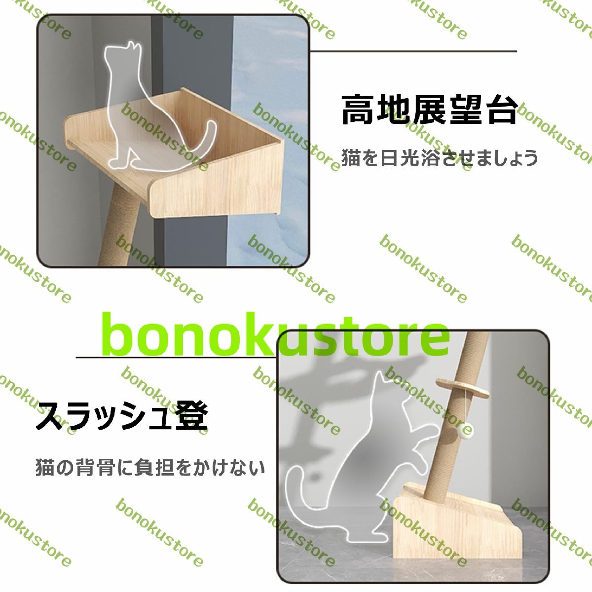 巨大な傾斜柱は猫の好奇心を刺激し、家でも木に登ることができ、科学的な傾斜角度は猫の上り下りに非常に適しており、運動不足やストレスを解消します。 疲れたら棚でくつろげます。 複数の猫ちゃんでも使用可能です。製品:名前: キャットタワー 木製 突っ張り素材: 無垢材+麻紐サイズ: 高い190cm出荷形態:お客様組立親切なヒント:1. 商品のサイズは手作業で測定しておりますので、若干の誤差はご了承ください。2.製品の色はメイン画像の影響を受けますが、モニターの違いにより、若干の色の違いがあることをご了承ください。3. この製品は手作業で取り付ける必要があり、完成するのが気になる場合や難しい場合は、慎重にご購入ください。