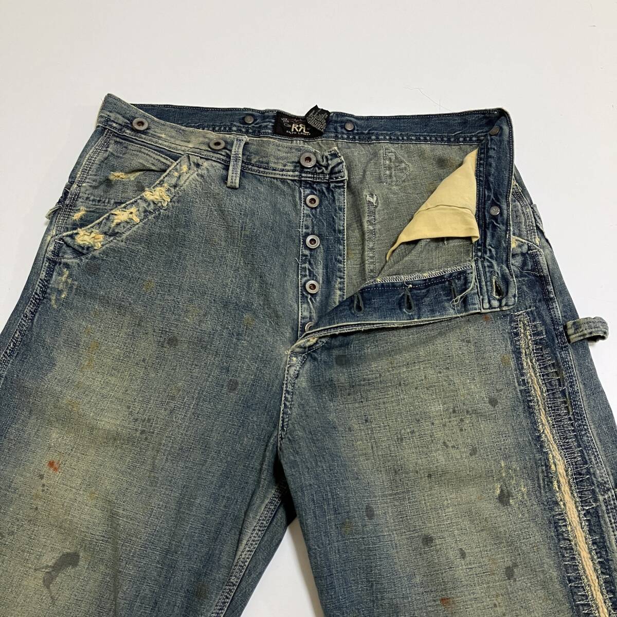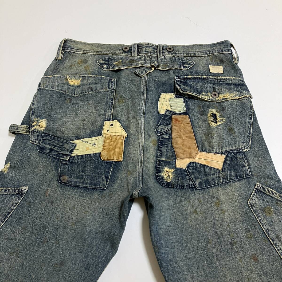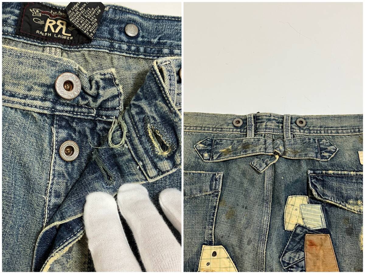 初期 RRL パッチワーク ダメージ加工 デニム ペインター パンツ シンチバック W31 RALPH LAUREN ダブルアールエル ワーク ジーンズ 5010105