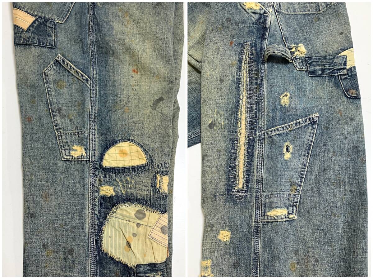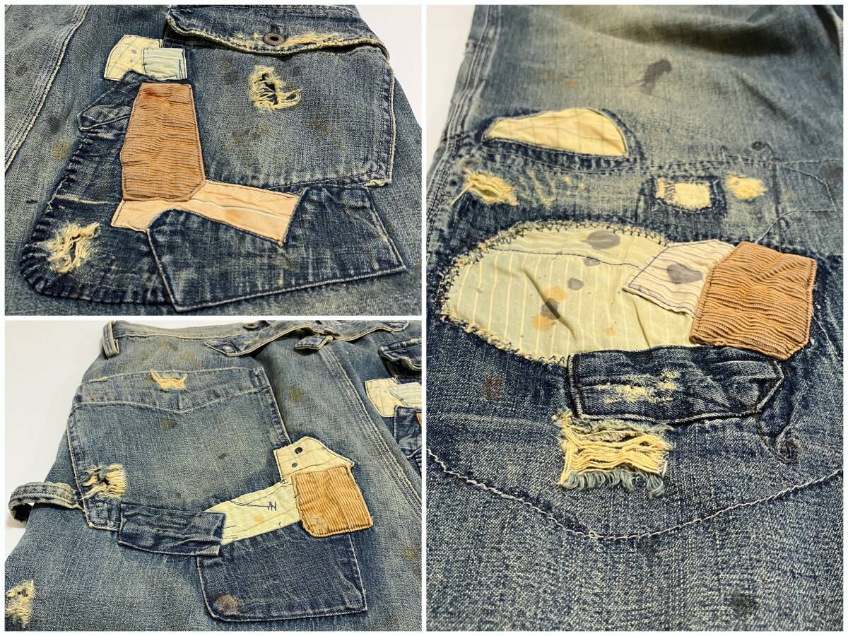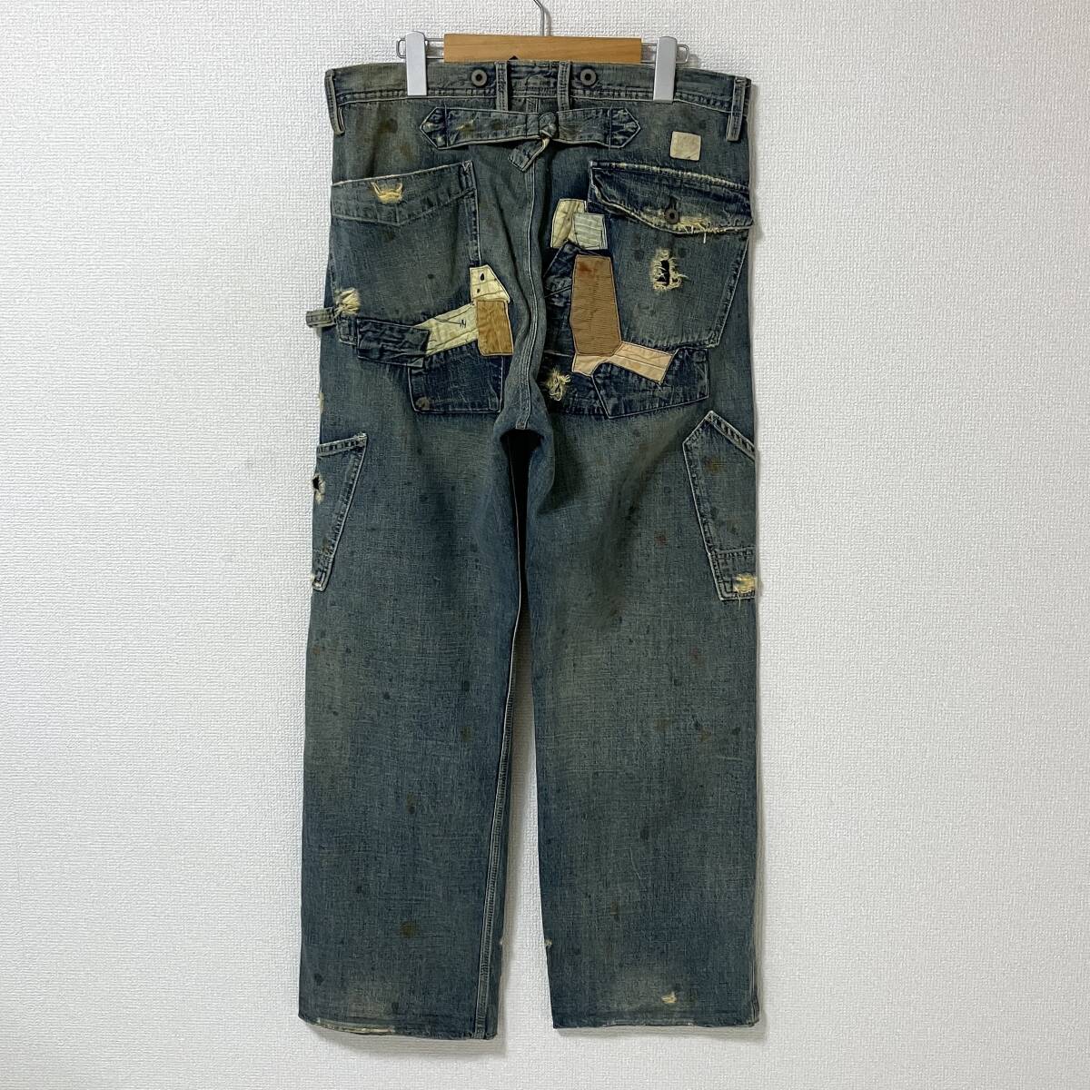 初期 RRL パッチワーク ダメージ加工 デニム ペインター パンツ シンチバック W31 RALPH LAUREN ダブルアールエル ワーク ジーンズ 5010105