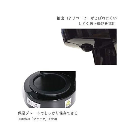 しずく防止機能を採用しているので、抽出中にジャグを外しても、 抽出口よりコーヒーがこぼれにくい設計。