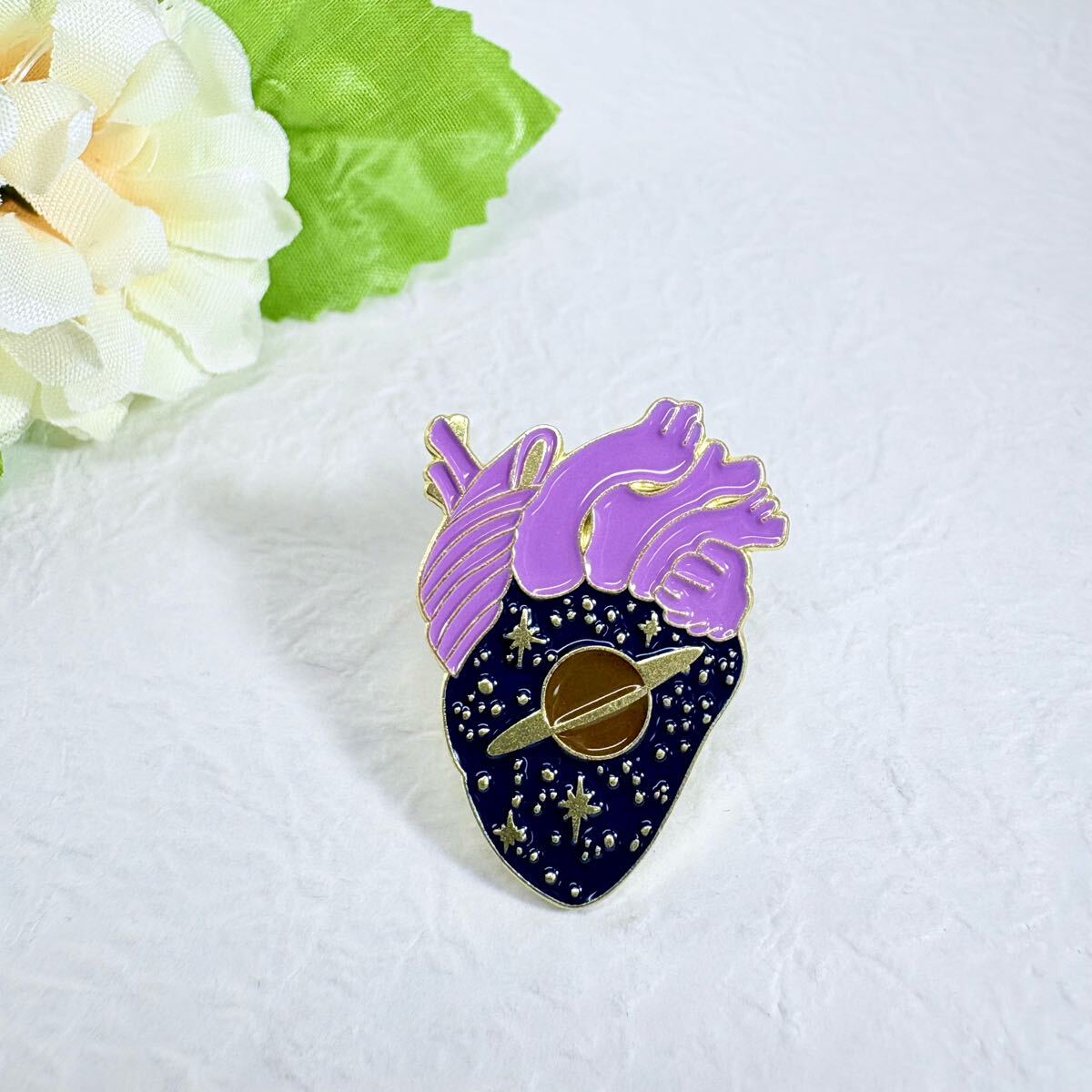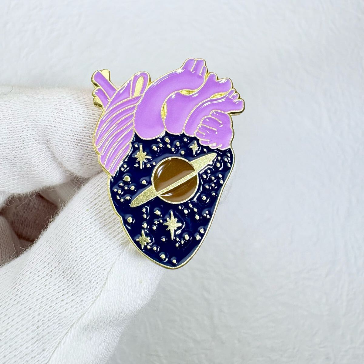 【ピンバッジ】心臓の中にある宇宙 土星 惑星
