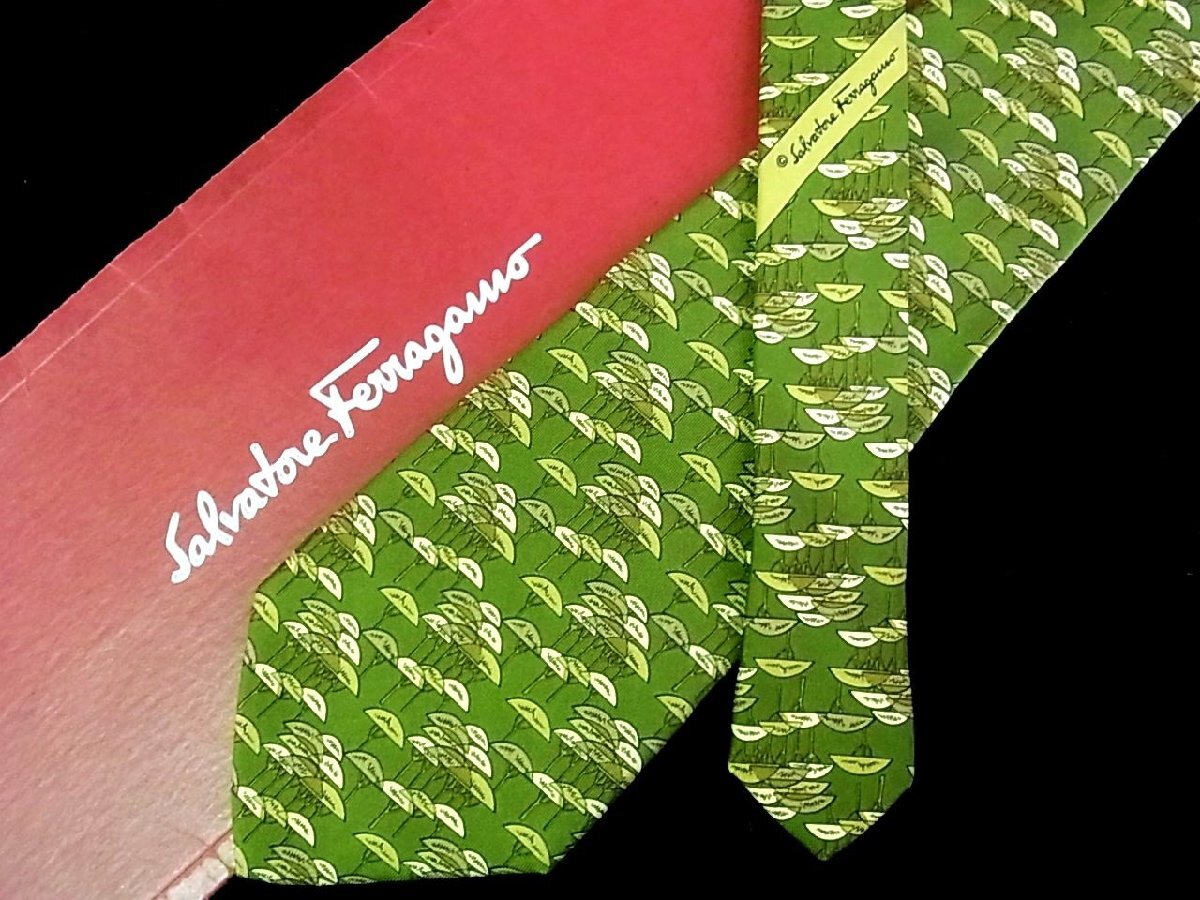 ★今週の特売★6213★高級ブランド【キャラ柄】★フェラガモ【樹木 柄】ネクタイ★