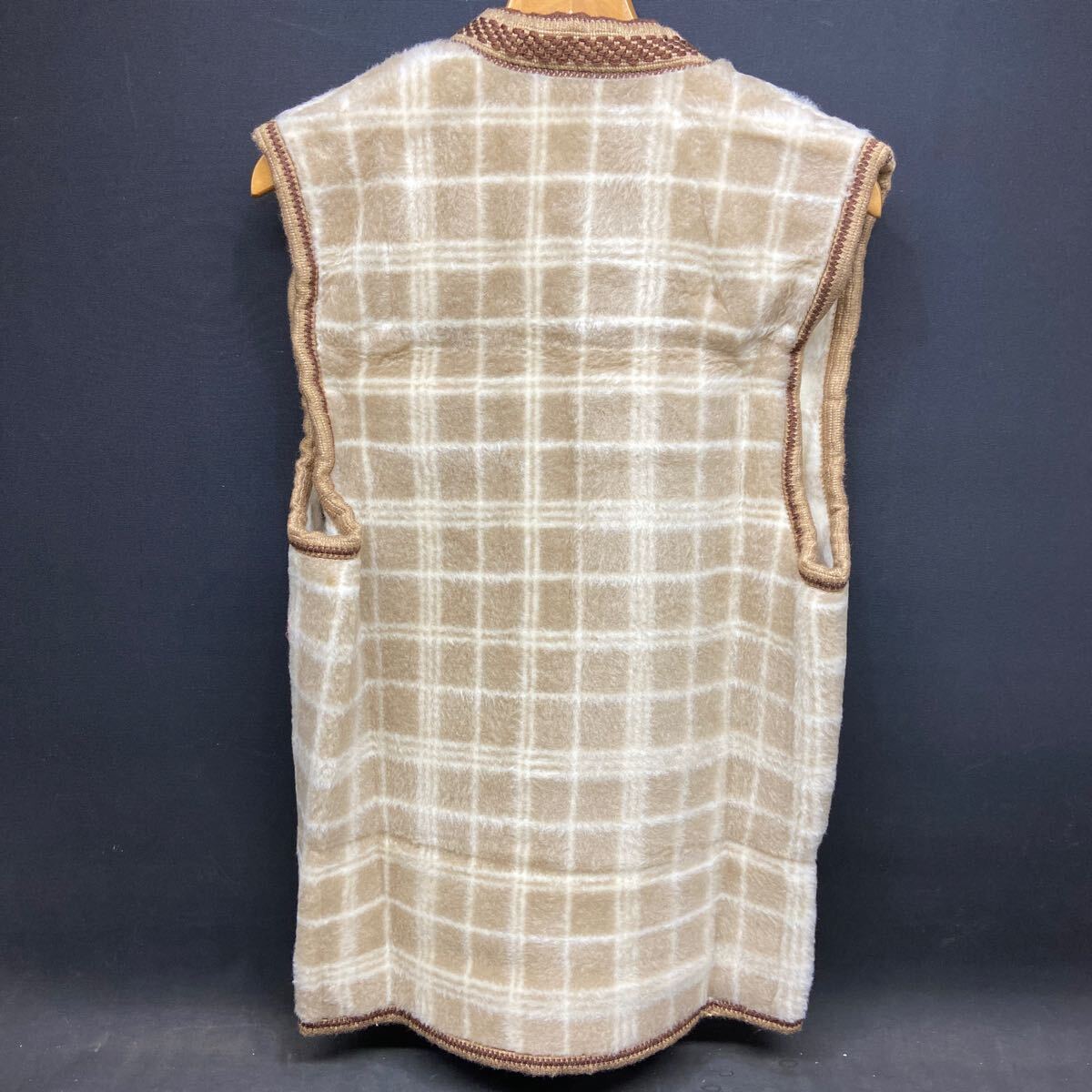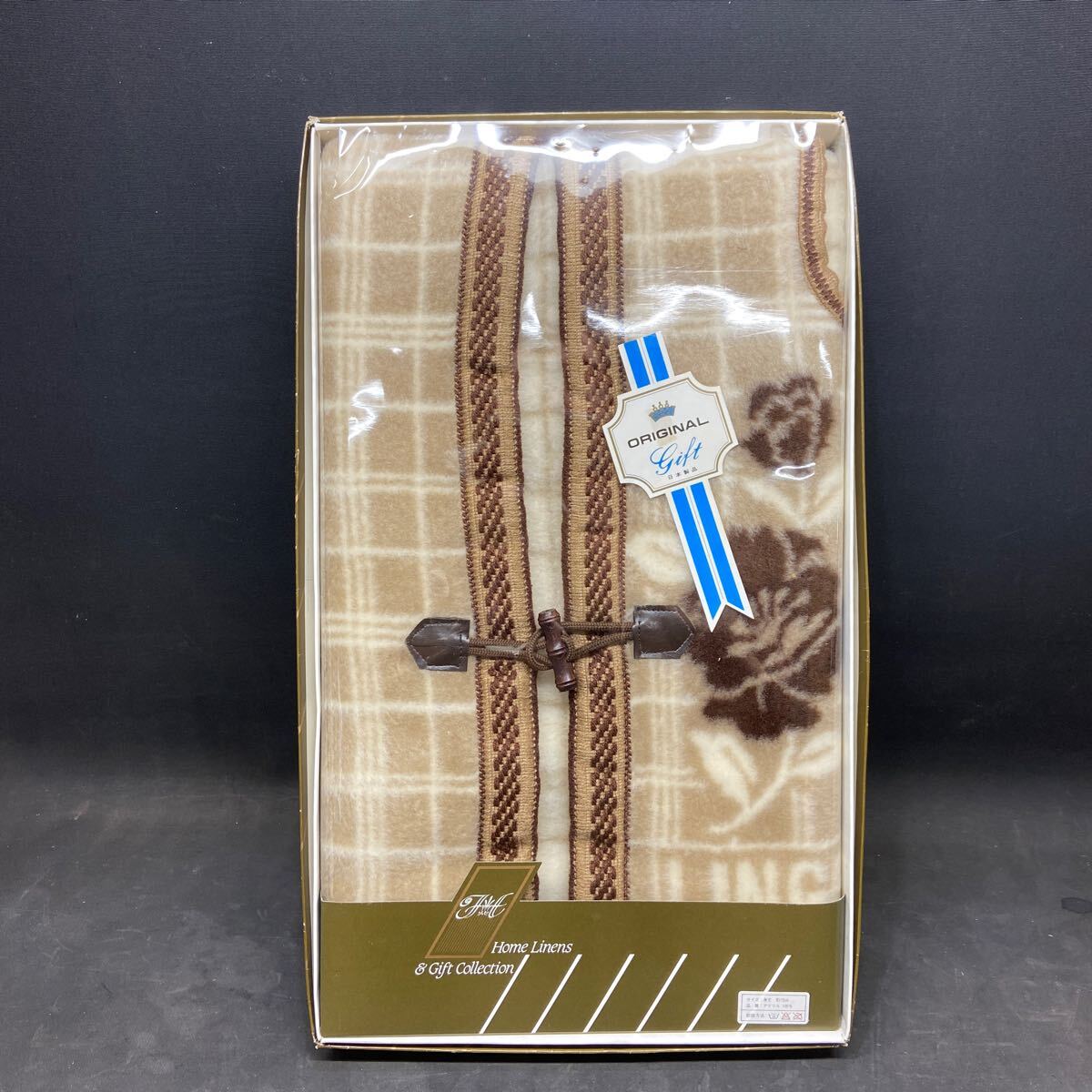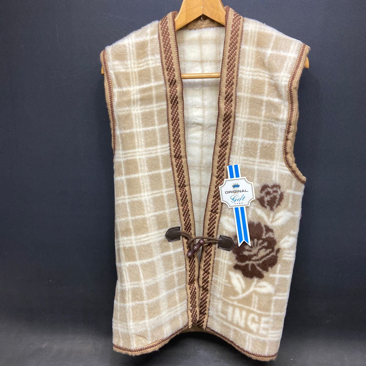 着丈73cm 防寒 冬 春先 ベスト 室内 外出 ウッドボタン 箱入り 花柄 ブラウン 長期保管品