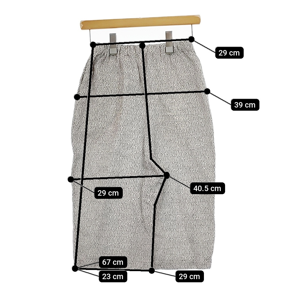 実寸サイズ | 総丈:約67cm ウエスト:約29cm ウエスト最長:約44cm 股上:約40.5cm 股下:約29cm ヒップ:約39cm ワタリ幅:約29cm 裾幅:約23cm ※記載以外のサイズが合わないことを理由とした返品はできませんので、 記載部分以外で実寸サイズの気になる箇所があれば必ず購入前にご質問ください。 |