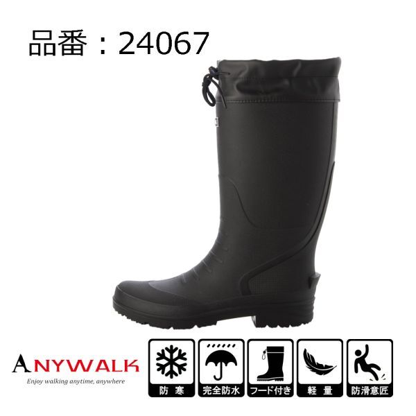 24067 メンズ レインブーツ ブラック L(26.5-27.0) ワークブーツ 長靴 雨靴 作業靴 防滑底 ウレタンインナー フード 巾着付 幅広 ②