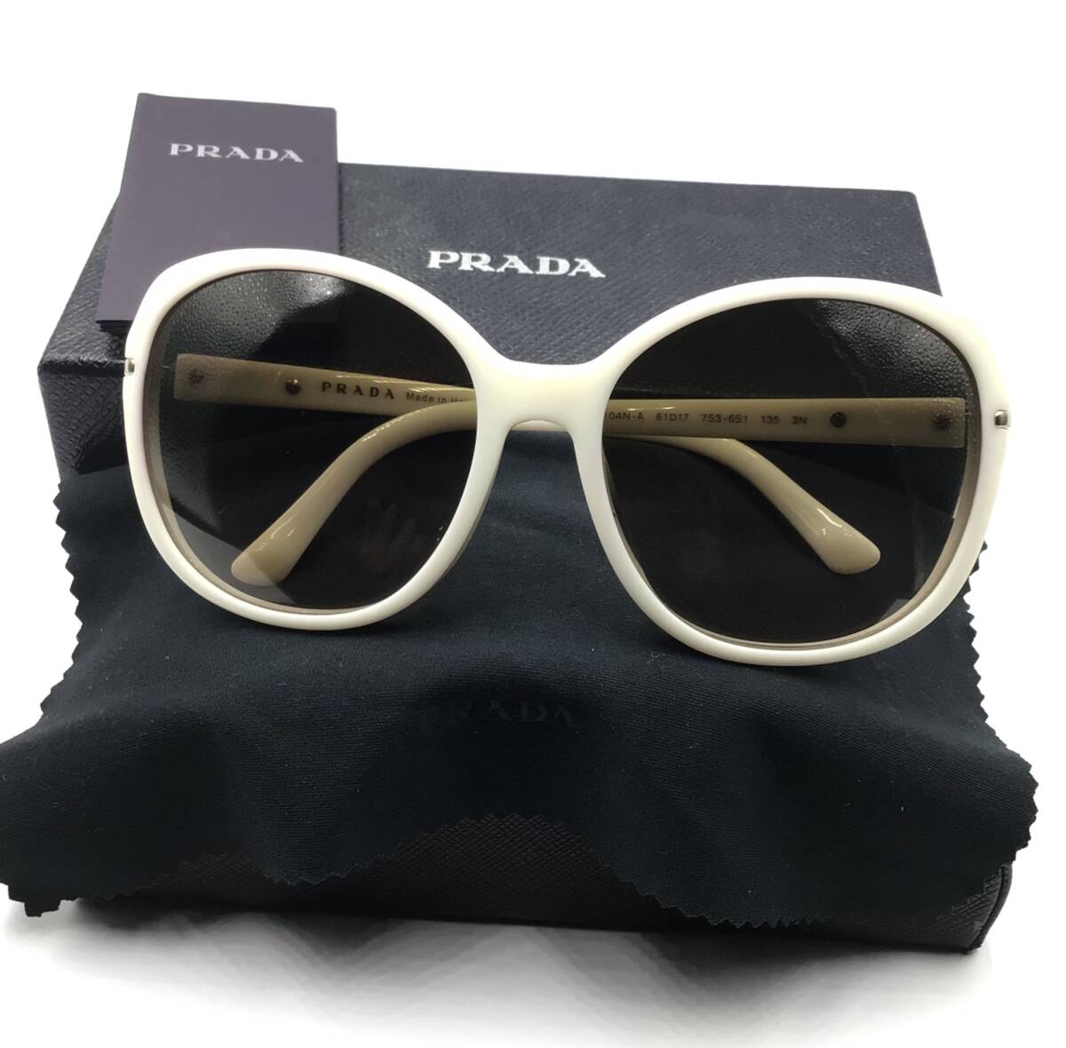 ご覧頂き有難う御座います。 トラブル防止の為、ご入札の前に必ず説明文等最後までお読みになりご理解の上入札宜しくお願い致します。 気持良く使って頂け為に、クリーニング・ 磨き・3DUV紫外線消毒99.9除菌をおこなっております。 商品真贋鑑定済みでございますのでご安心してご購入下さい。 【ブランド】 PRADA プラダ 【商品名】 おしゃれ サングラス 【カラー】 アイボリークリーム系 【サイズ】 SPR04N-A 61ロ17 7S3-6S1 1353N レンズ横幅:約60mm レンズ縦幅:約52mm ブリッジ幅:約13mm フレーム横幅:約140mm テンプル長さ:約132mm 【付属品】 箱 眼鏡拭き 【管理番号】 44586 【商品状態】 :A フレーム薄スレありますが、目立つ傷はなく活躍している商品です。 N:新品/未使用品 S:新品同様綺麗な商品 SA:新品同様に近い美中古商品 A:多少の傷、汚れがみられますが、全体的に状態の良い商品 AB:多少の傷、汚れが多くみられる中古商品 B:傷汚れがみられる中古商品 BC:傷汚れが多くみられる中古商品 C:かなり傷汚れが多くみられる中古商品 E:難有/ジャンク扱い ◎お休みなども御座いますので、即発送希望の方は 自己紹介欄に記載いたしておりますので必ず御覧確認下さい。 | ||