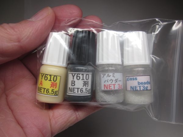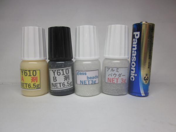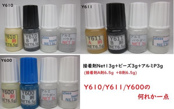 .★送料込み★アクリル系接着剤NET13g+アルミパウダーグラスビーズ3g+アルミパウダー3gタイプ☆Y610/Y611黒S/Y600の何れか1set!!