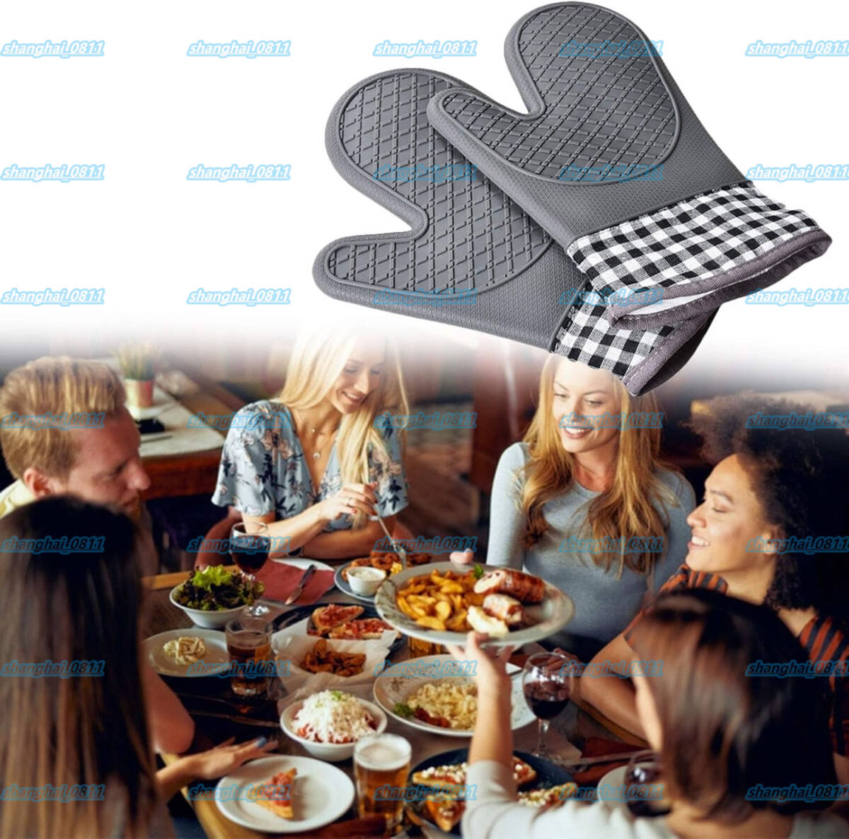 シリコンオーブンミット、柔軟なノンスリップオーブングローブ(キルティングライナー付き)、調理およびベーキング、耐熱260℃以下、1ペア