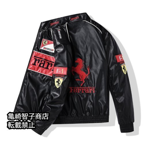 新品刺繍入りの厚手PUレザーのバイカージャケット、野球スタイルのコットンジャケット、バイカー用フライトジャケット-XL