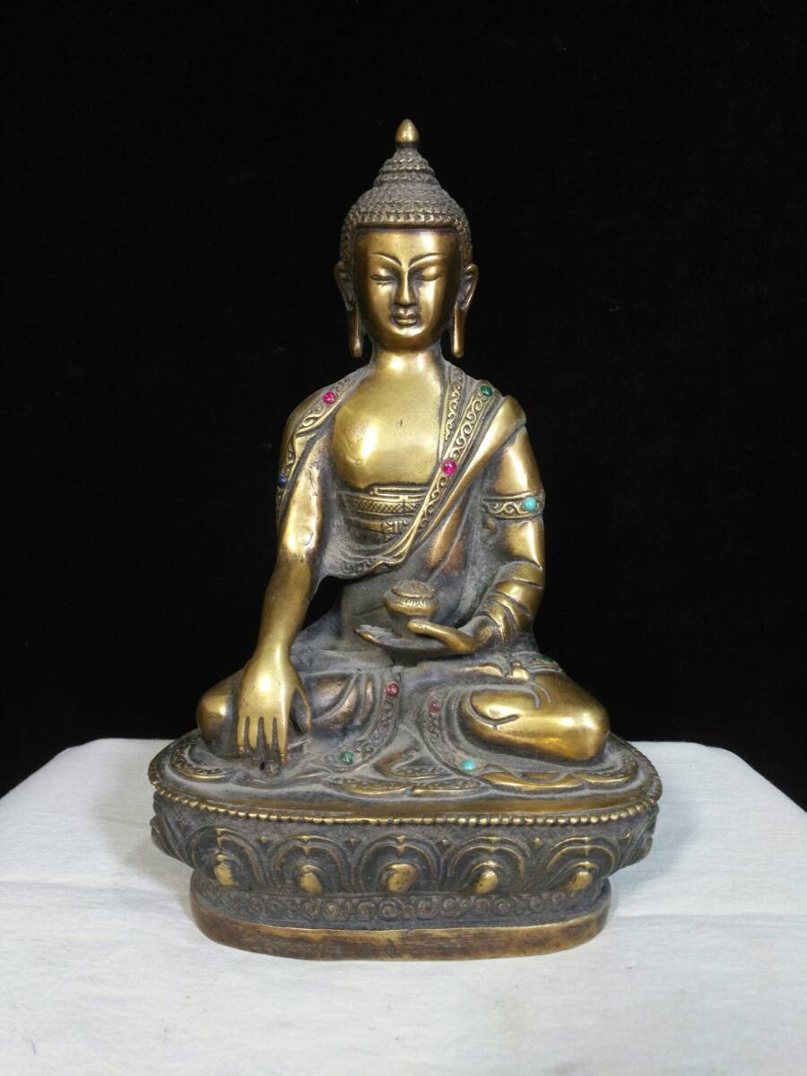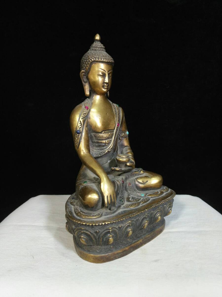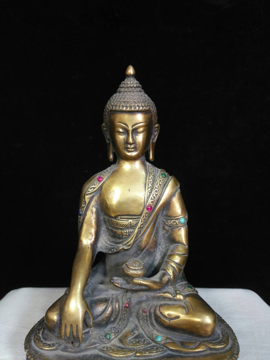 | 【蔵友館蔵品・銅製・塗金・寶石嵌・釋迦牟尼像】・希少珍品・置物・賞物・中国時代美術 |