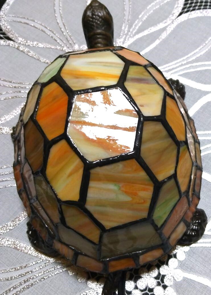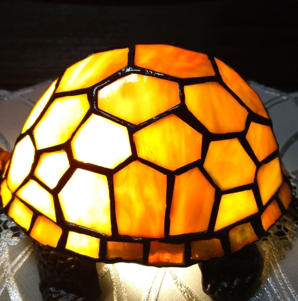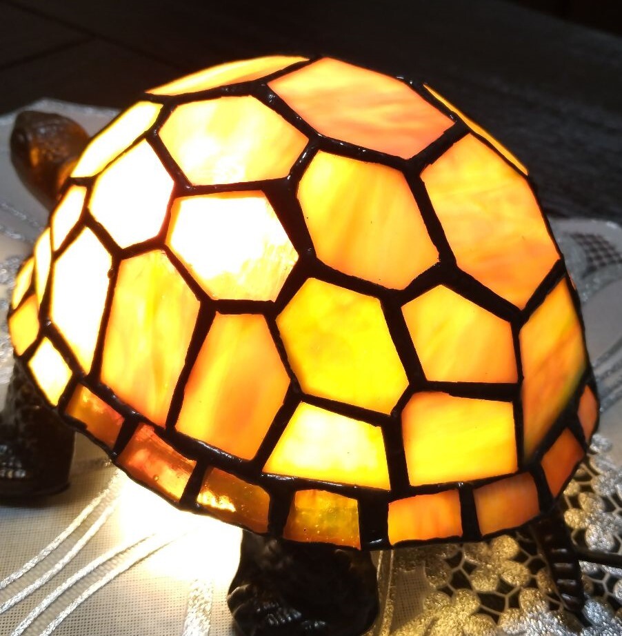 限定特価品(新品)手作り工芸品  ステンドグラス亀型ランプ ガレ風ランプ照明