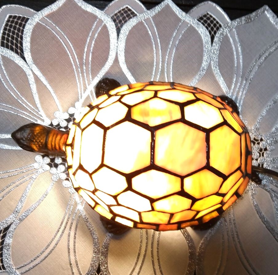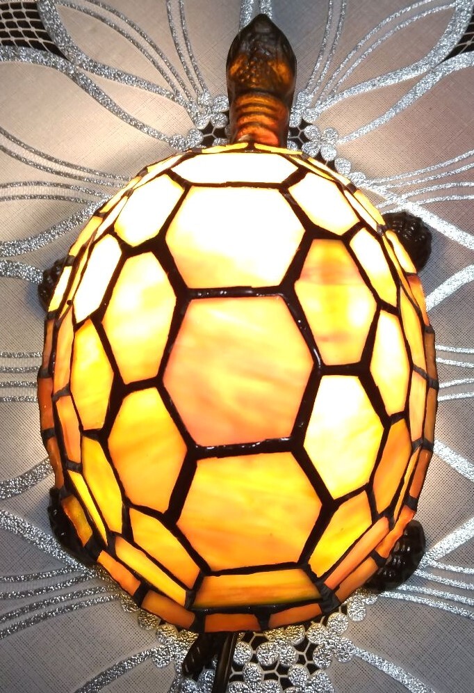 (新品)手作り工芸品  ステンドグラス亀型ランプ ガレ風ランプ照明