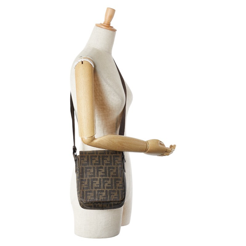 フェンディ ズッカ ショルダーバッグ ブラウン PVC レザー レディース FENDI 【中古】