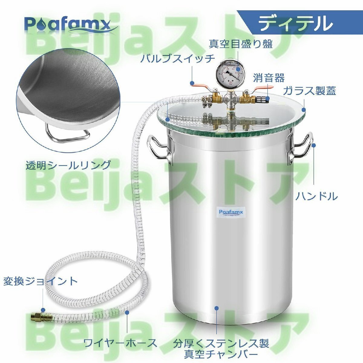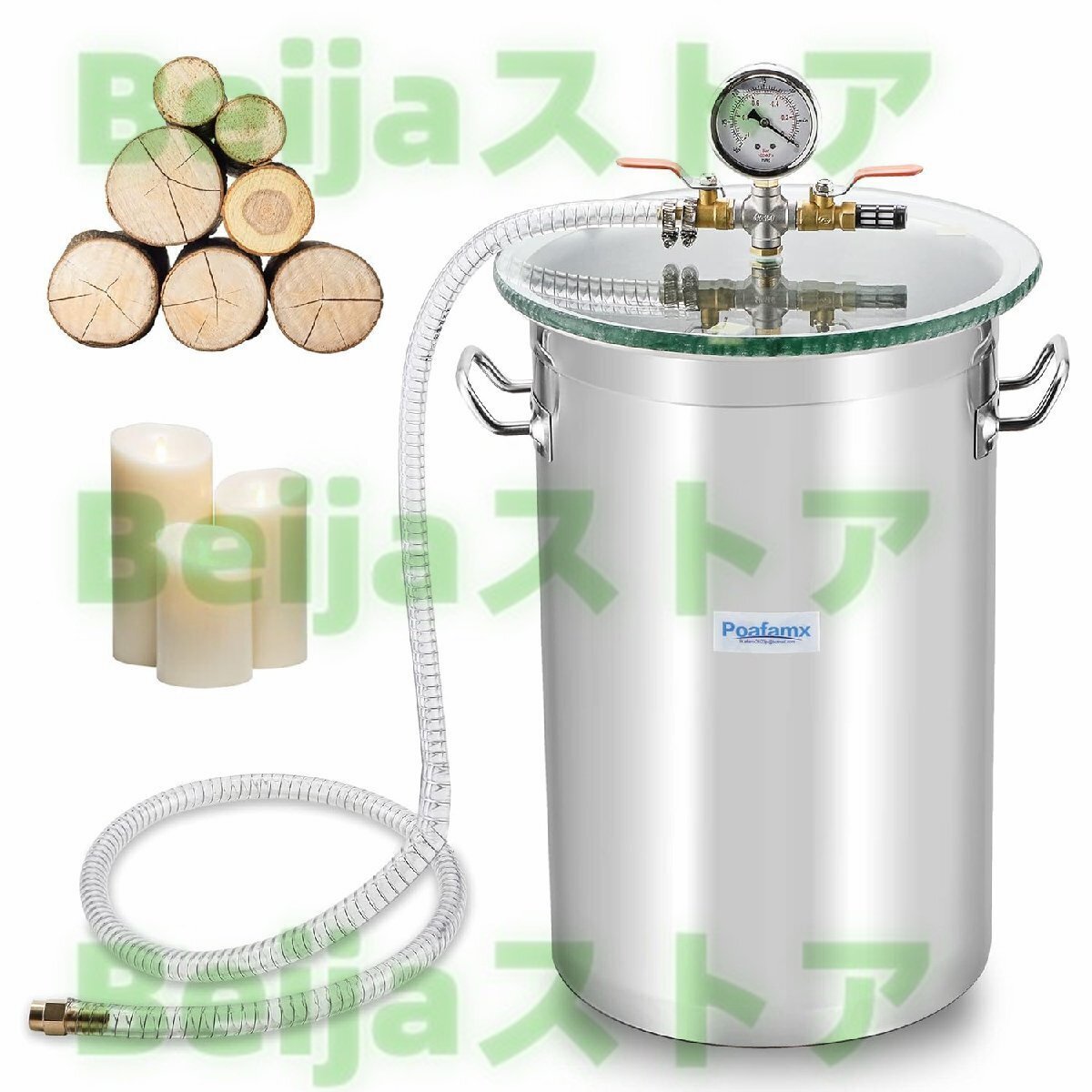真空チャンバー キット 12L ステンレス製 ガラス製蓋 真空脱泡器 真空注型器 脱泡機 低ノイズ 樹脂/木材の安定化処理/ラテックス樹脂
