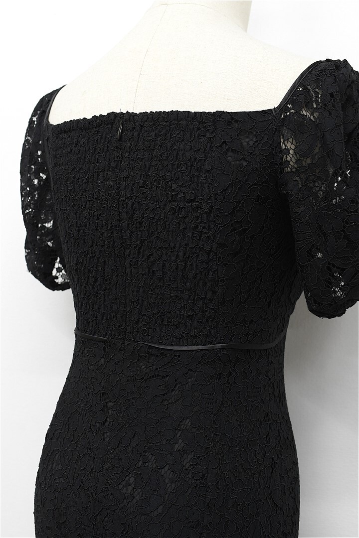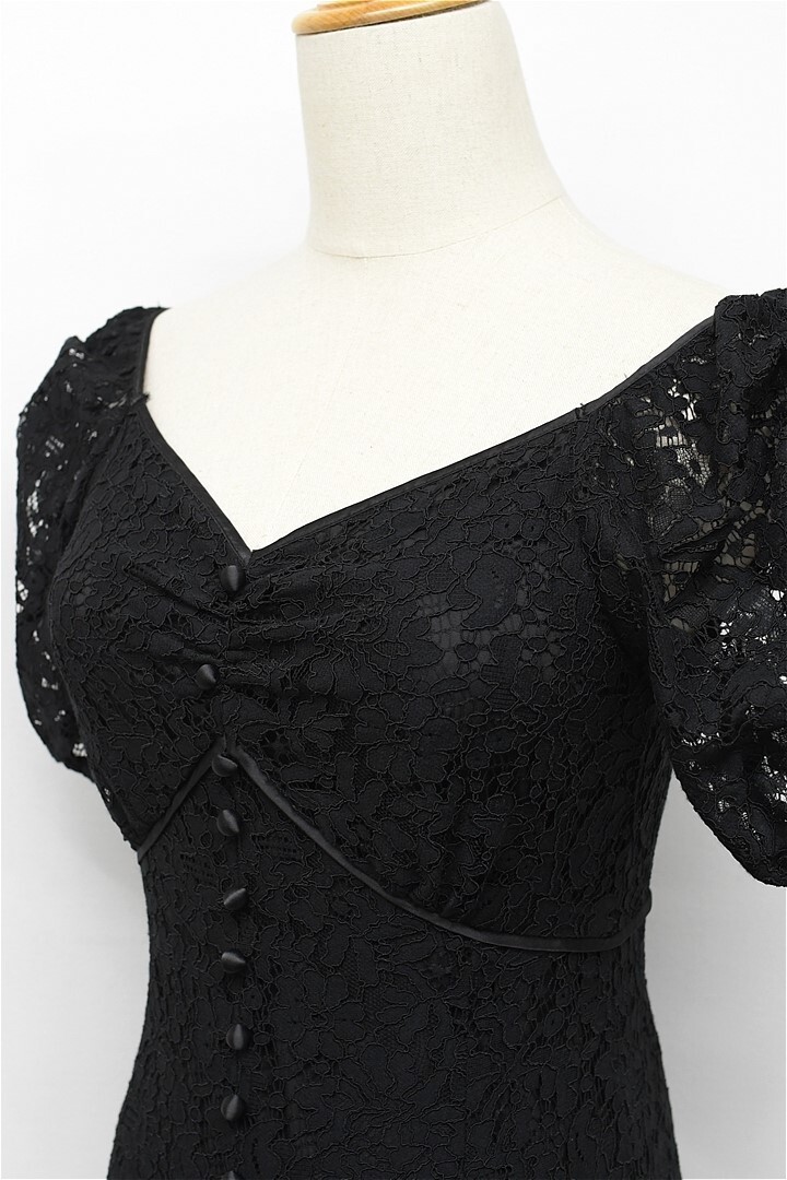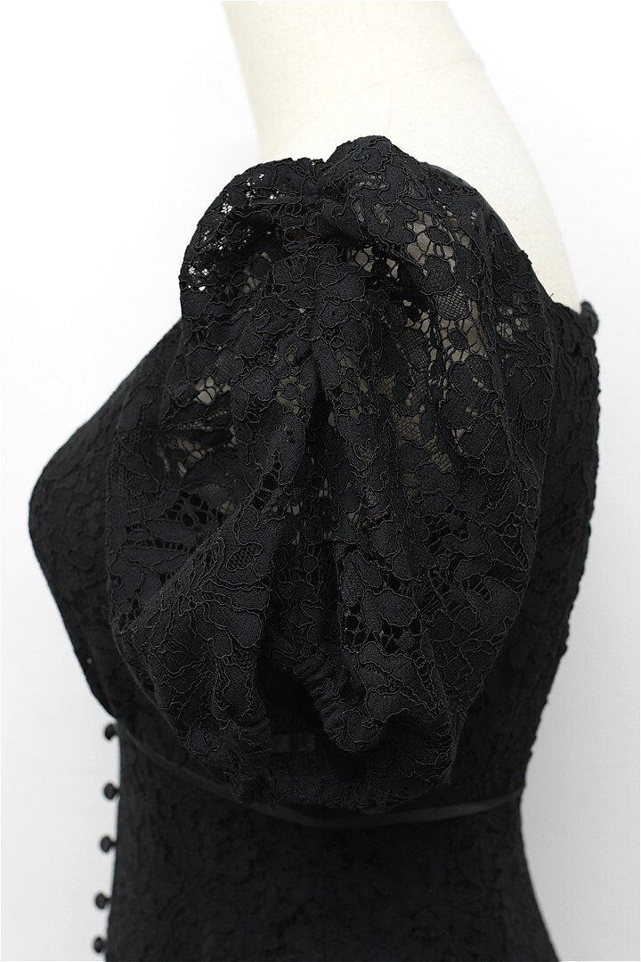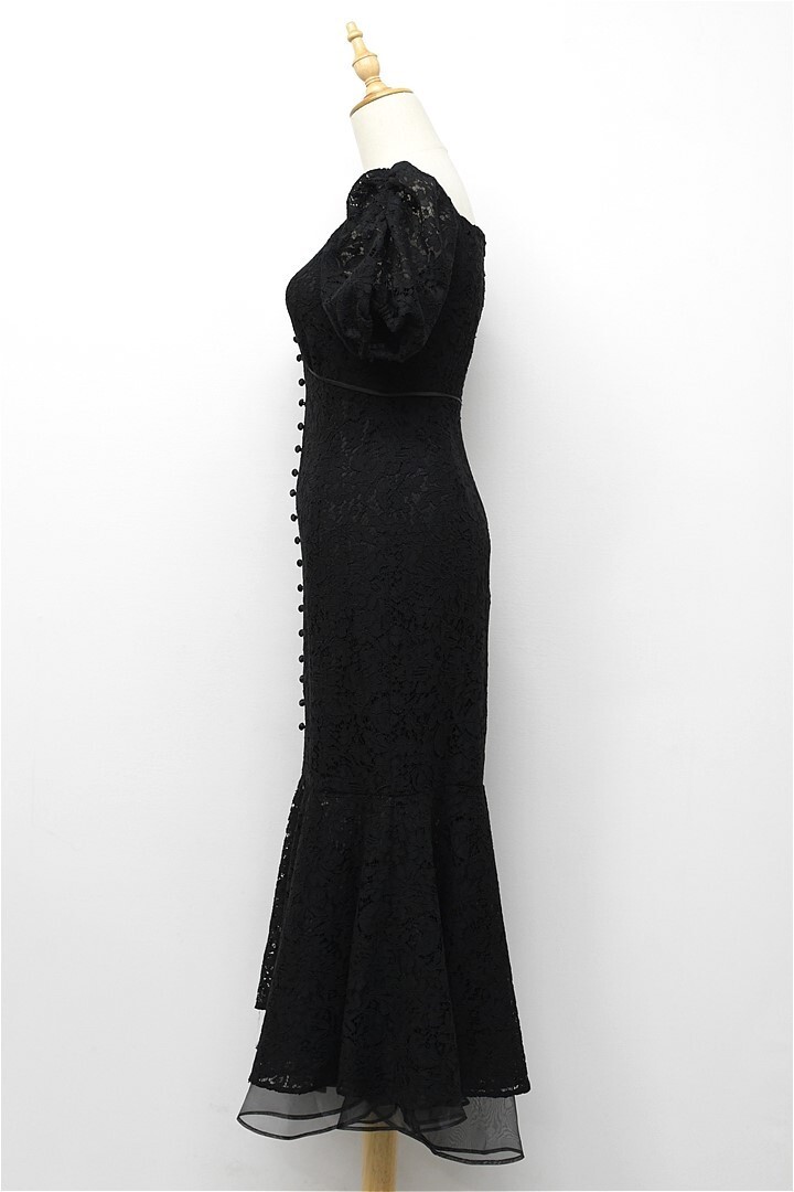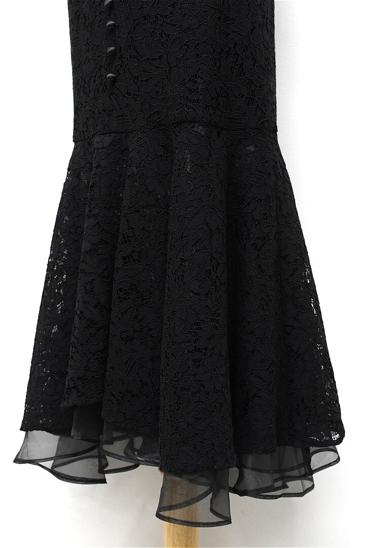 B463/美品 eimy istoire エイミーイストワール ドレス ツートンレースマーメイドワンピース ロング シースルー 小花柄 総柄 半袖 S 黒