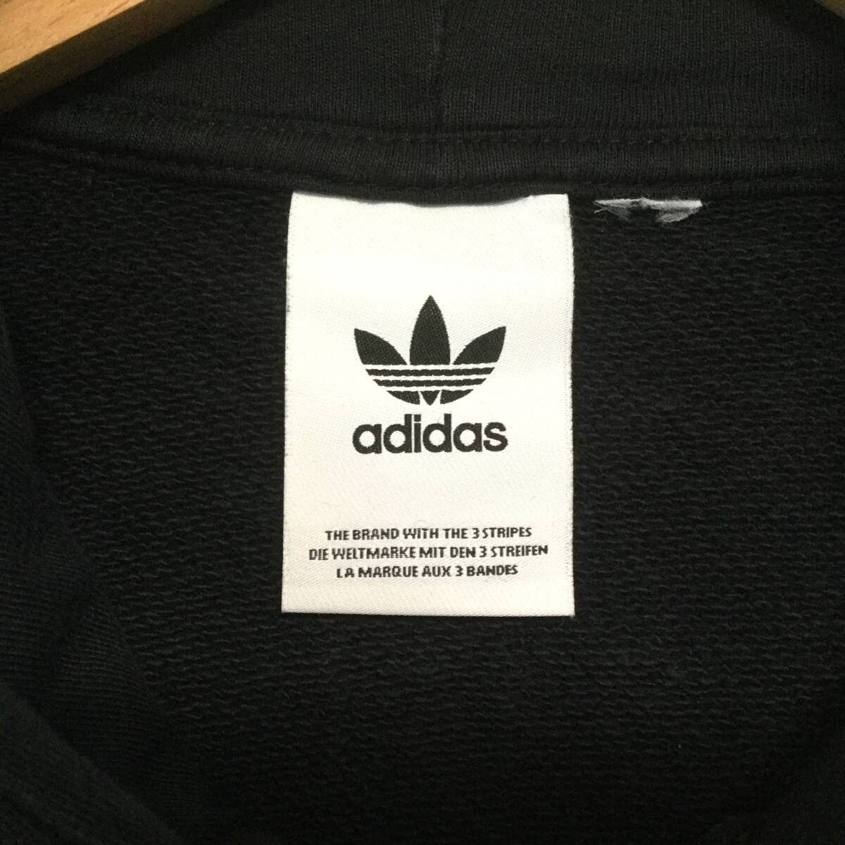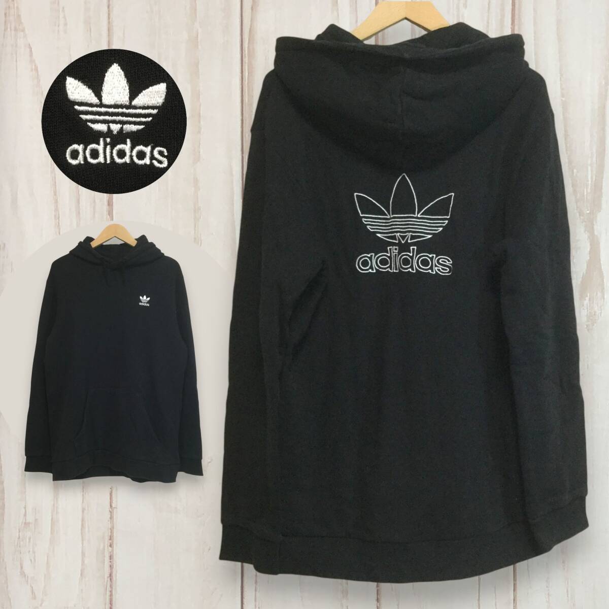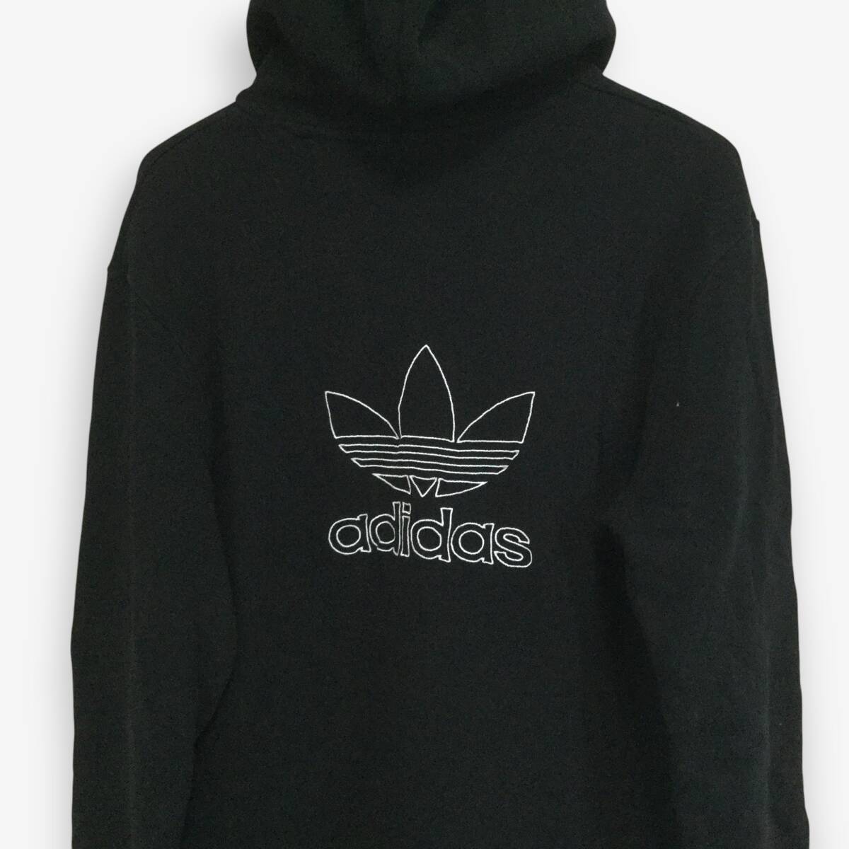 【アディダス 長袖ロゴ刺繍パーカー】背面ビッグロゴ刺繍 プルオーバー 2XL 黒 adidas 古着 [250126-014]