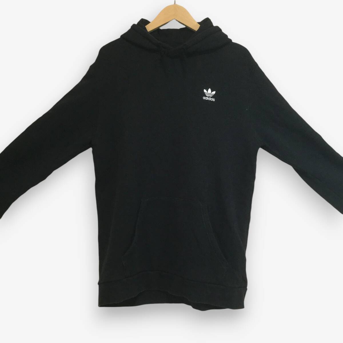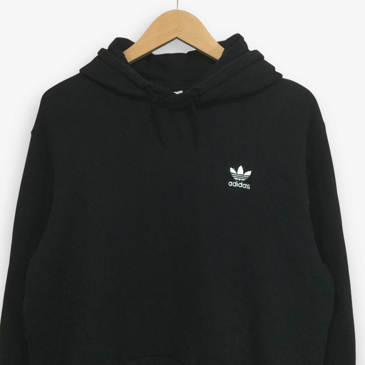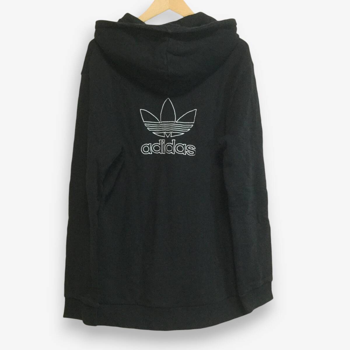 【アディダス 長袖ロゴ刺繍パーカー】背面ビッグロゴ刺繍 プルオーバー 2XL 黒 adidas 古着 [250126-014]