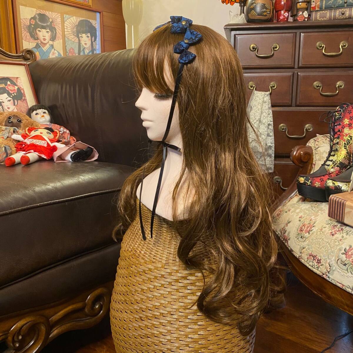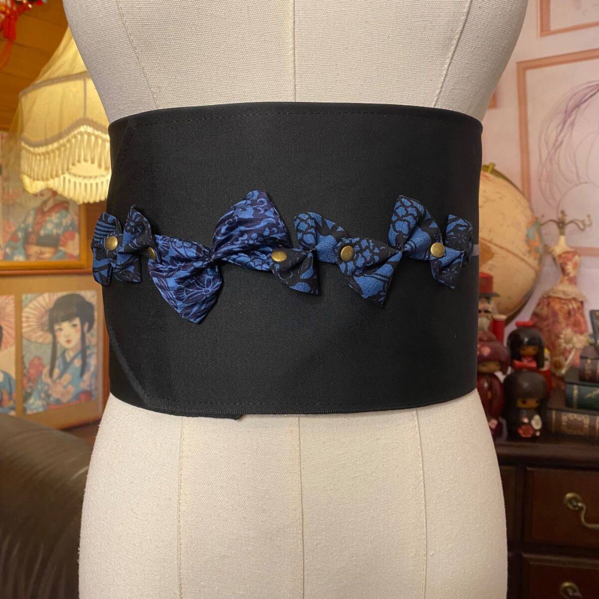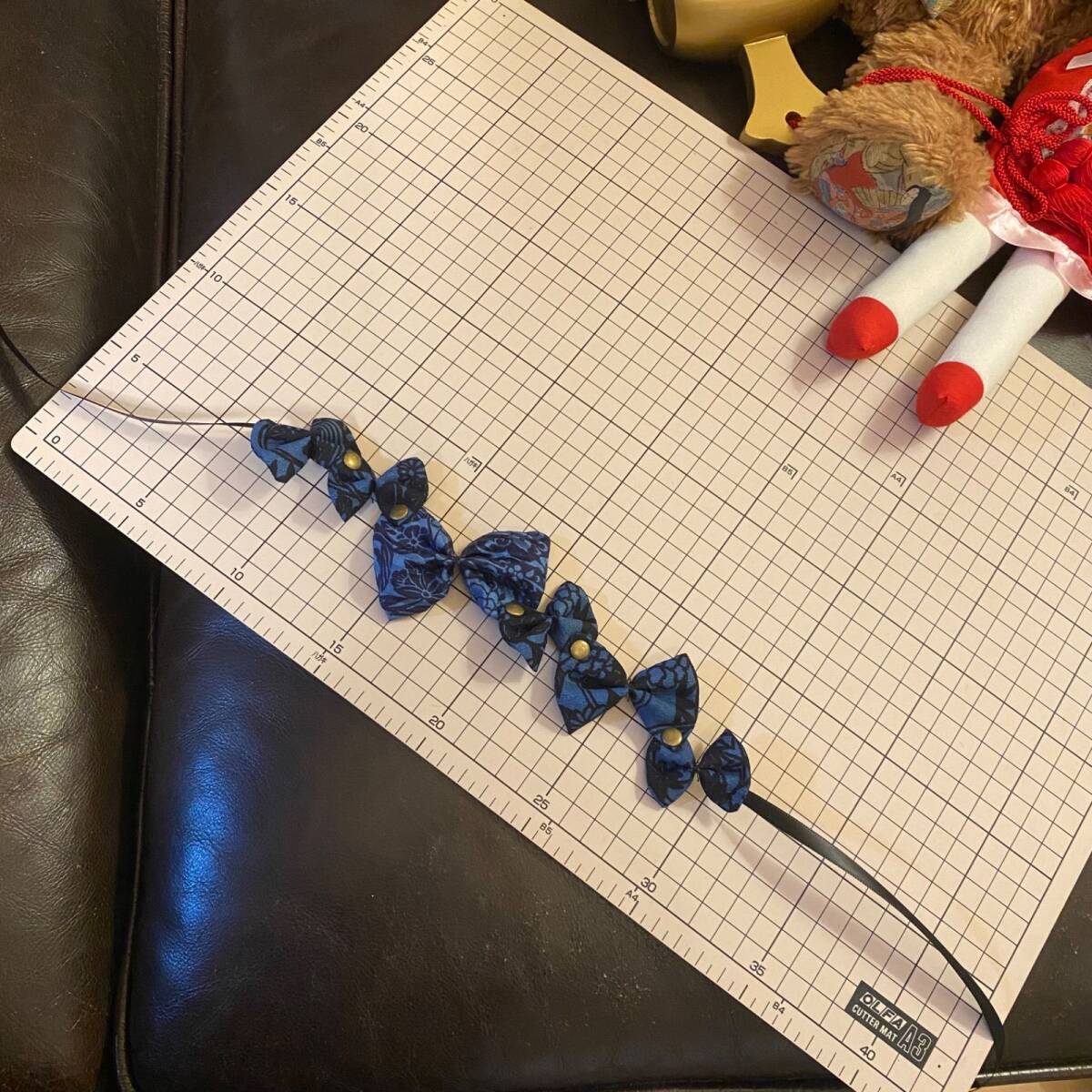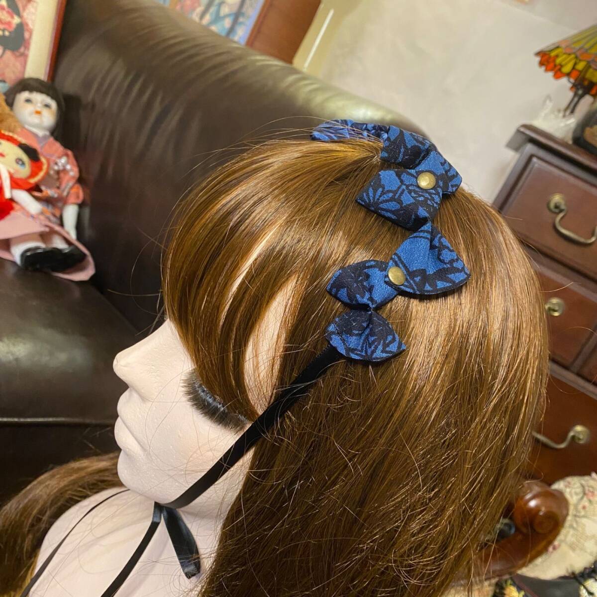 【着物リメイク 帯締め 帯飾り おりぼん ティアラ ヘッドドレス カチューム 2wayヘアアクセサリー 和洋折衷 レトロ 和ロリータ 夜空のように深く美しい 藍色の生地 に、繊細な和柄が浮かぶ気品あふれるデザイン。 K-4】