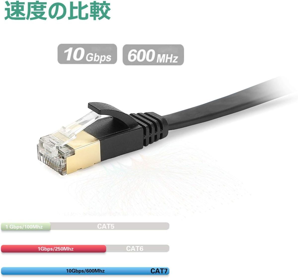•   通信速度アップ:50M 有線lanケーブル カテゴリ7に準拠した高速LANケーブルで、次世代の10Gbps対応高速、600MHz((CAT5の6倍、CAT6の2.4倍)伝送帯域幅のイーサネット環境を実現します。 従来のケーブルより優れたシールド保護、広い伝送帯域幅、データエラー防止効果あり、 RJ45プラグ付きのすべてのネットワーク機器に接続できます