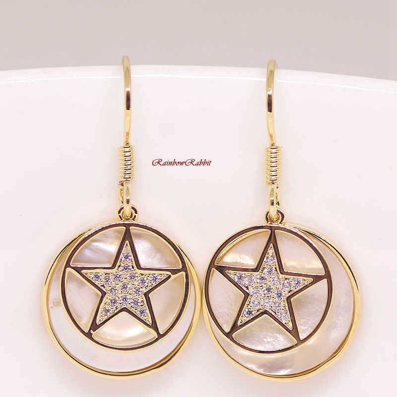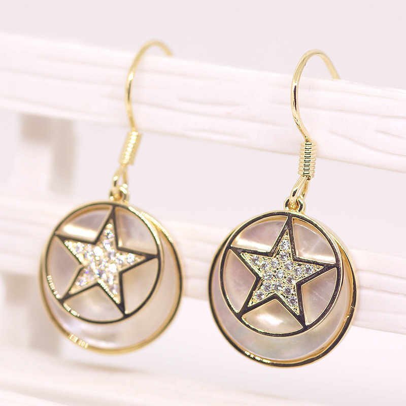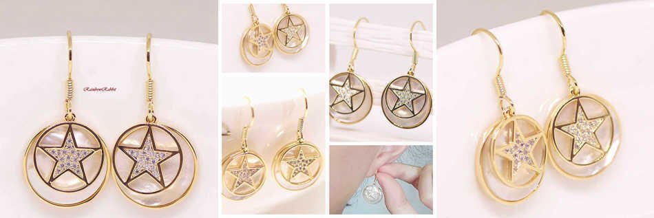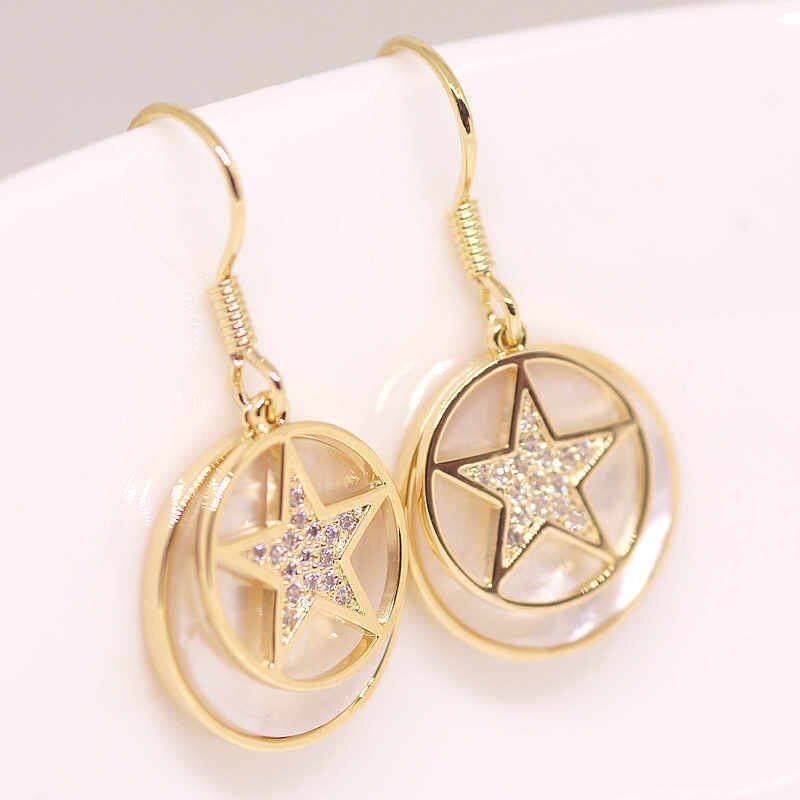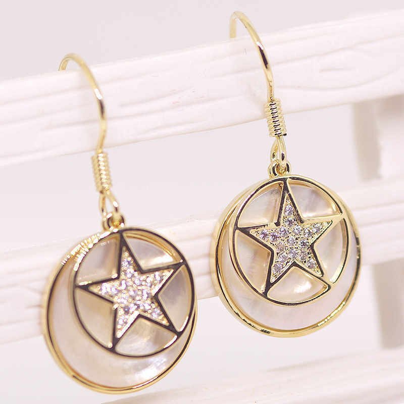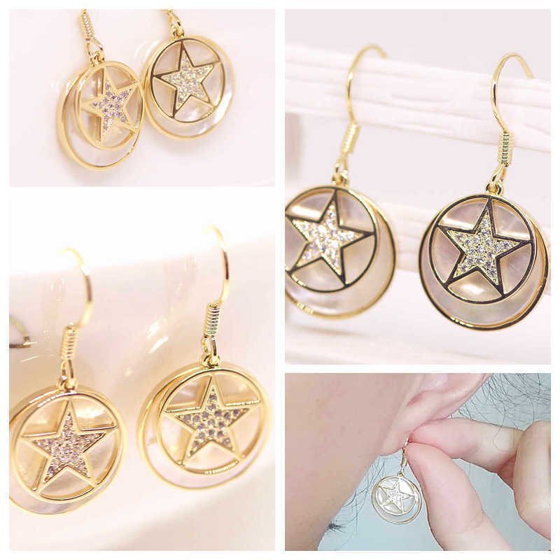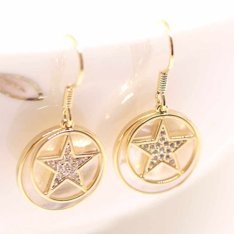 18K RGP ゴールド ダイヤ CZ スター 貝殻 ピアス gp5249