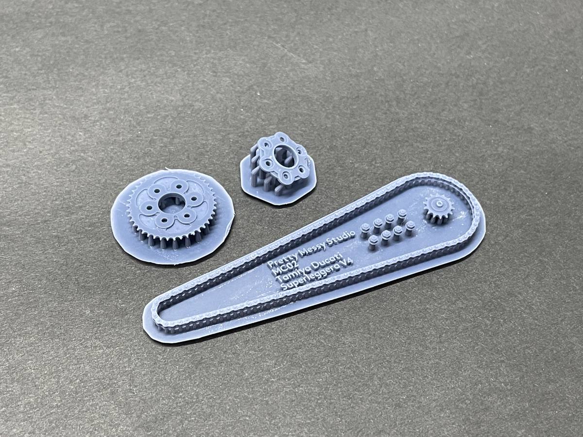 1/12 ドゥカティ スーパーレッジェーラV4 用の3Dプリンターで製作されたチェーンです。