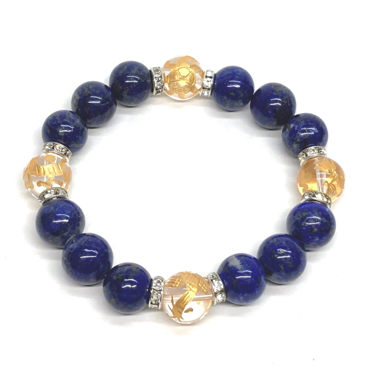 四神獣金彫水晶×ラピスラズリ 12mm パワーストーン ブレスレット天然石 青龍 白虎 玄武 朱雀 運気上昇 金運 健康運 お守り 四神相応 S
