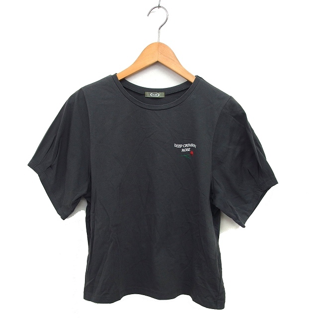 クティール kutir ボートネック カットソー Tシャツ タック プリント コットン混 半袖 F チャコールグレー /NT21 レディース