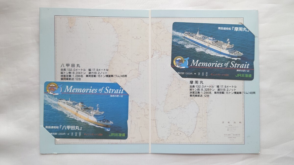 □JR北海道□青函連絡船 八甲田丸・摩周丸□記念オレンジカード1穴使用済み2枚組台紙付