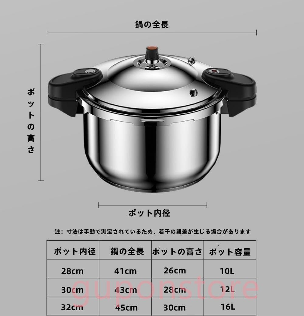 圧力鍋 304ステンレス鋼圧力鍋 12L 圧力なべダブルハンドル圧力鍋 大容量 80kpa 多重保護 家庭用 業務用 調理器具 30cm-12L